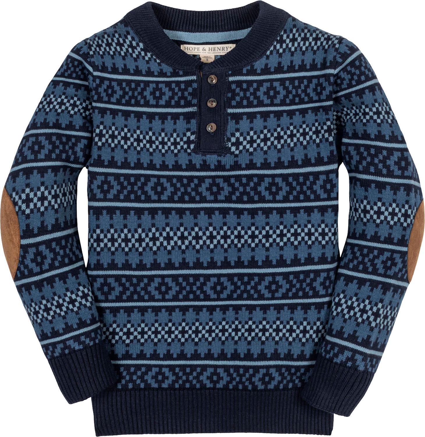 Hope & Henry - Boys Organic Sweater Henley With Elbow Patches