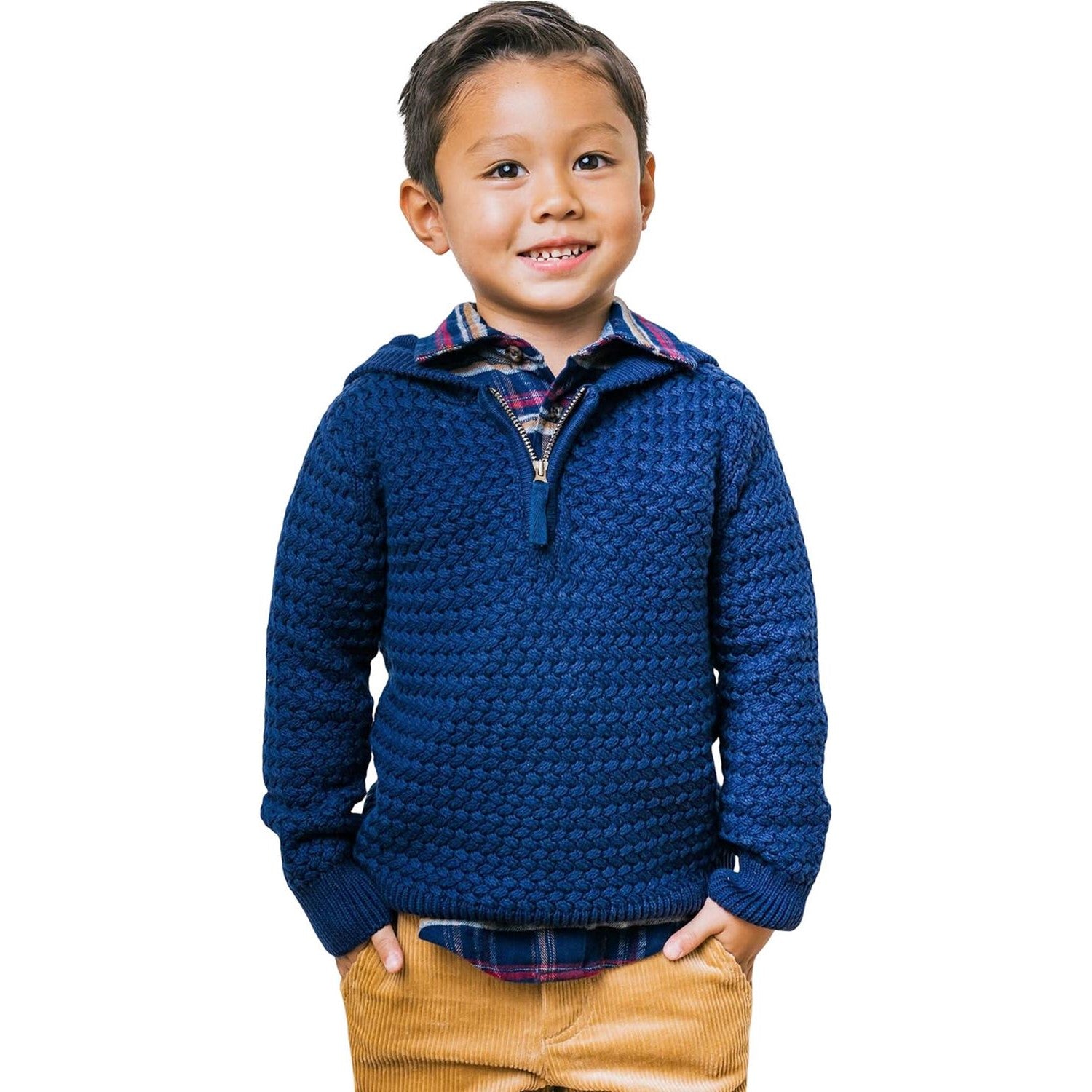 Hope & Henry - Boys Hooded Half Zip Organic Sweater