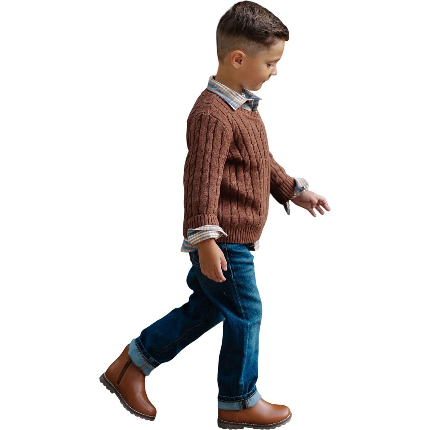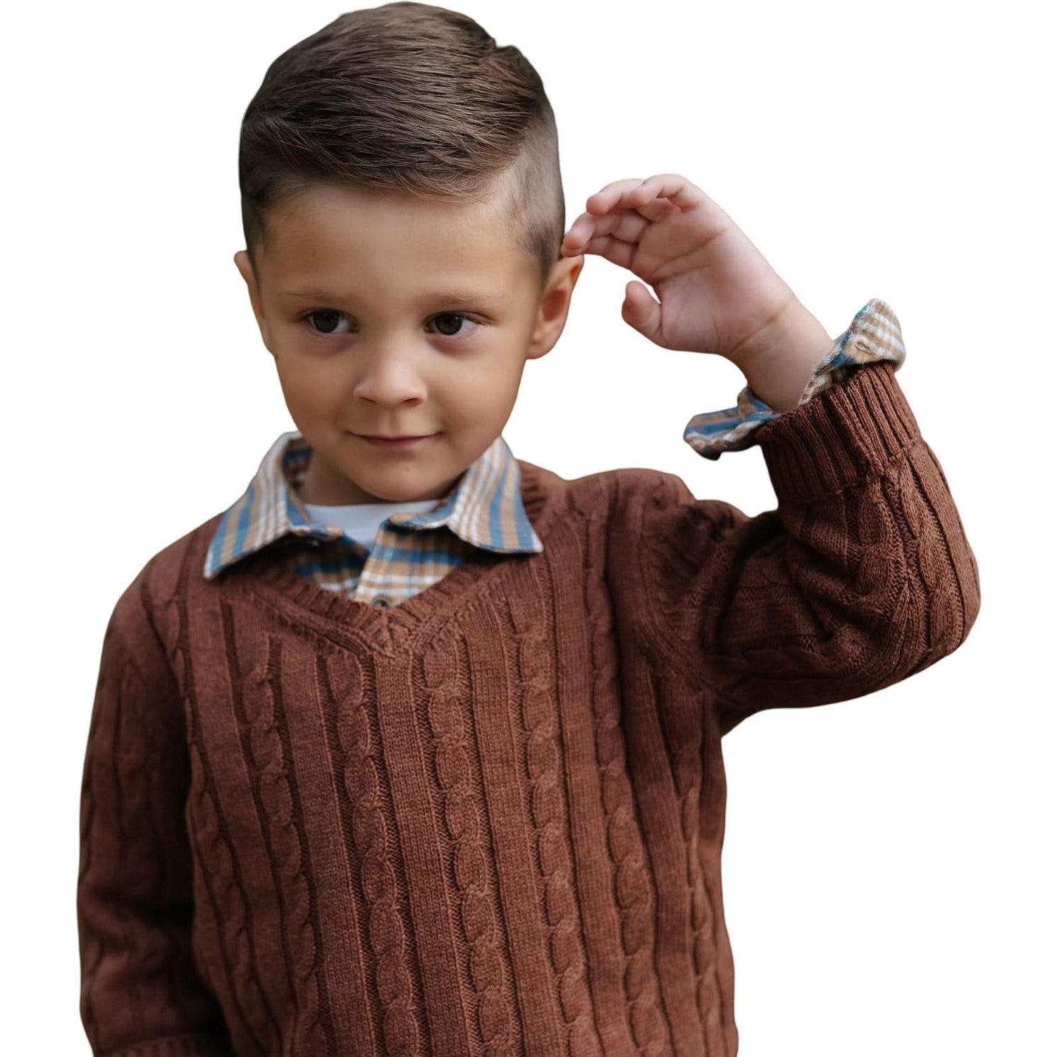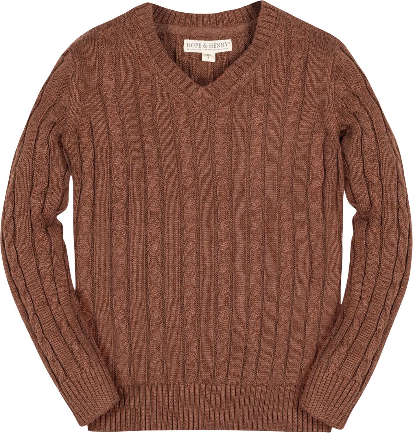 Hope & Henry - Boys Organic Fine Gauge Cable V-Neck Sweater