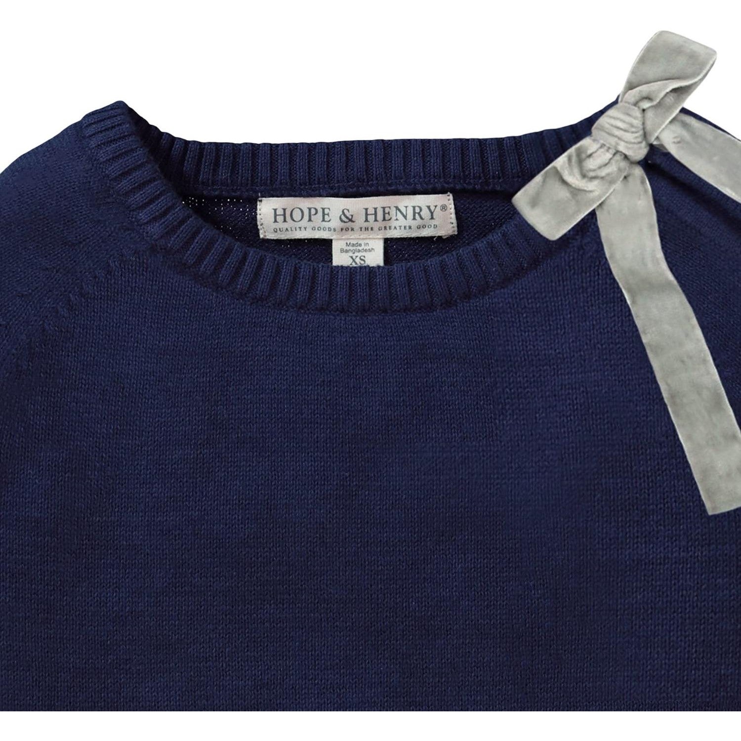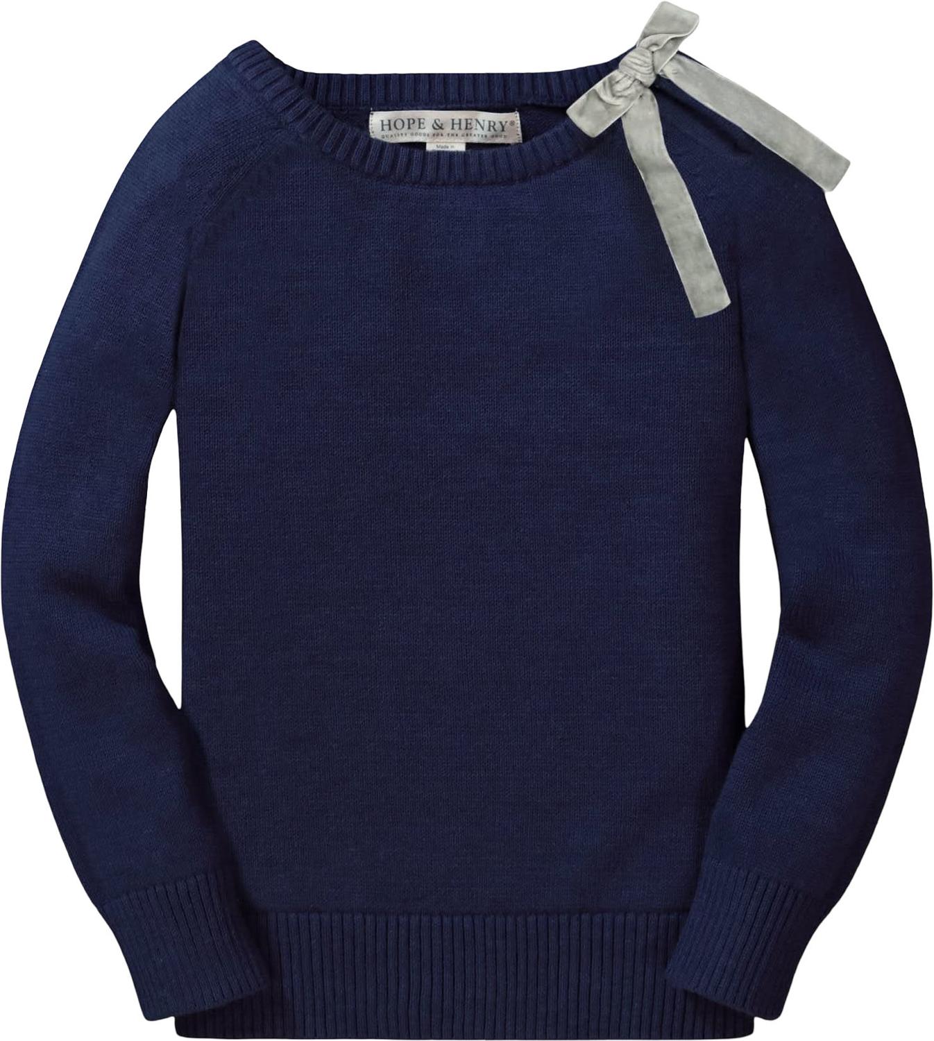 Hope & Henry - Girls Organic French Sweater With Velvet Bow