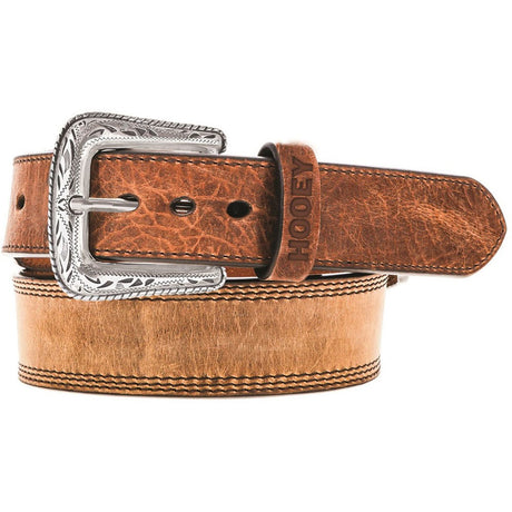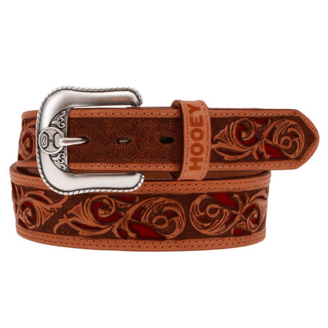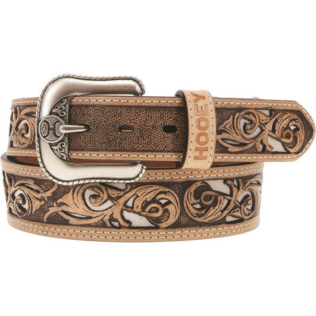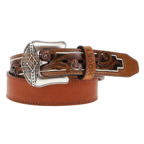 Hooey - Mens Top Notch 1.75-1.5 Tapered Natural Hand-Tooled Leather Filigree Cutout Belt With Inlay