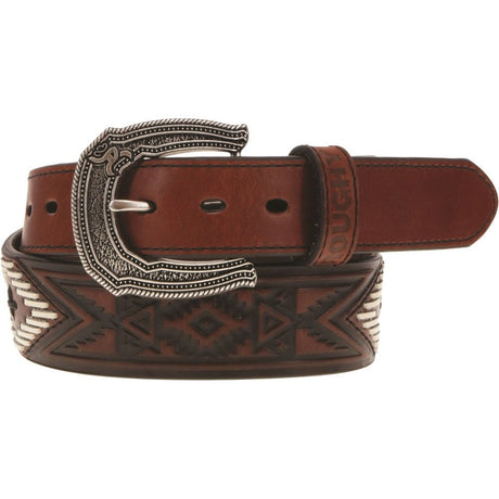 Roughy - Mens Chocktaw 1.75-1.5 Tapered Leather Aztec Embossed Belt With Hand-Laced &