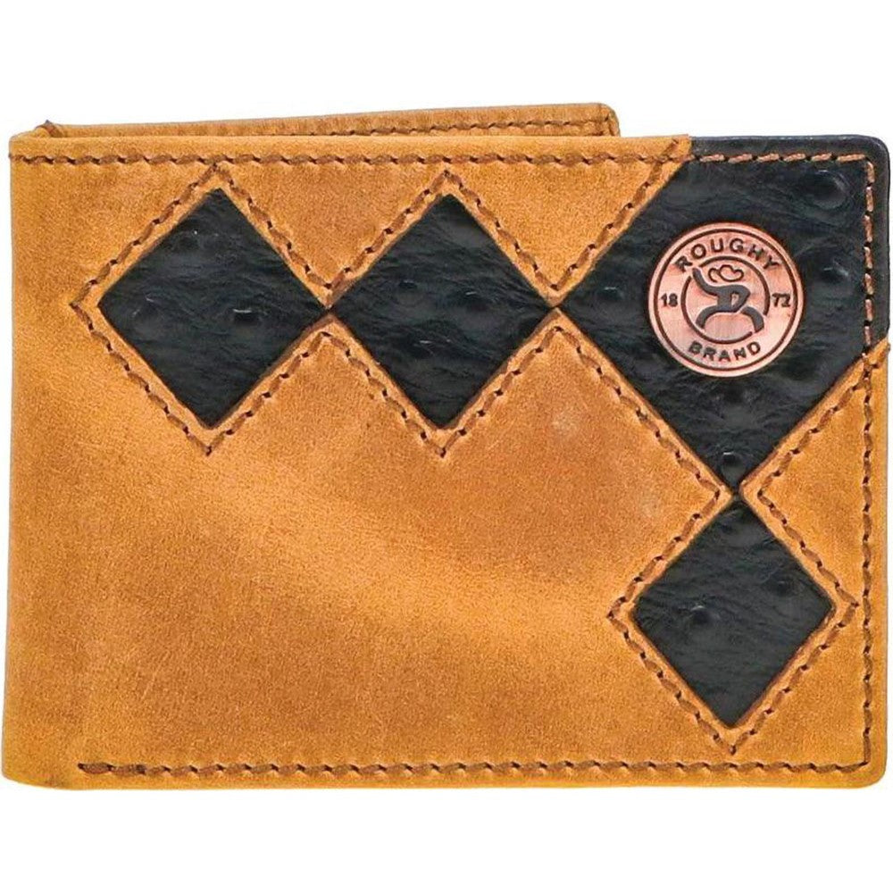 Roughy - Unisex Shiloh Diamond Patchwork Cutout Front Pocket Bi-Fold Wallet With Ostrich Print Leather Inlay And 1872 Logo Concho