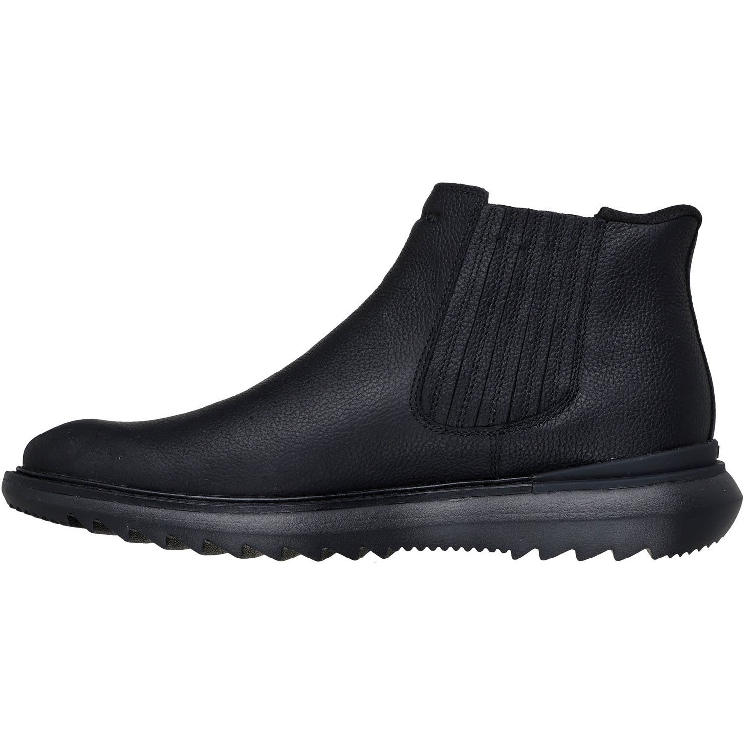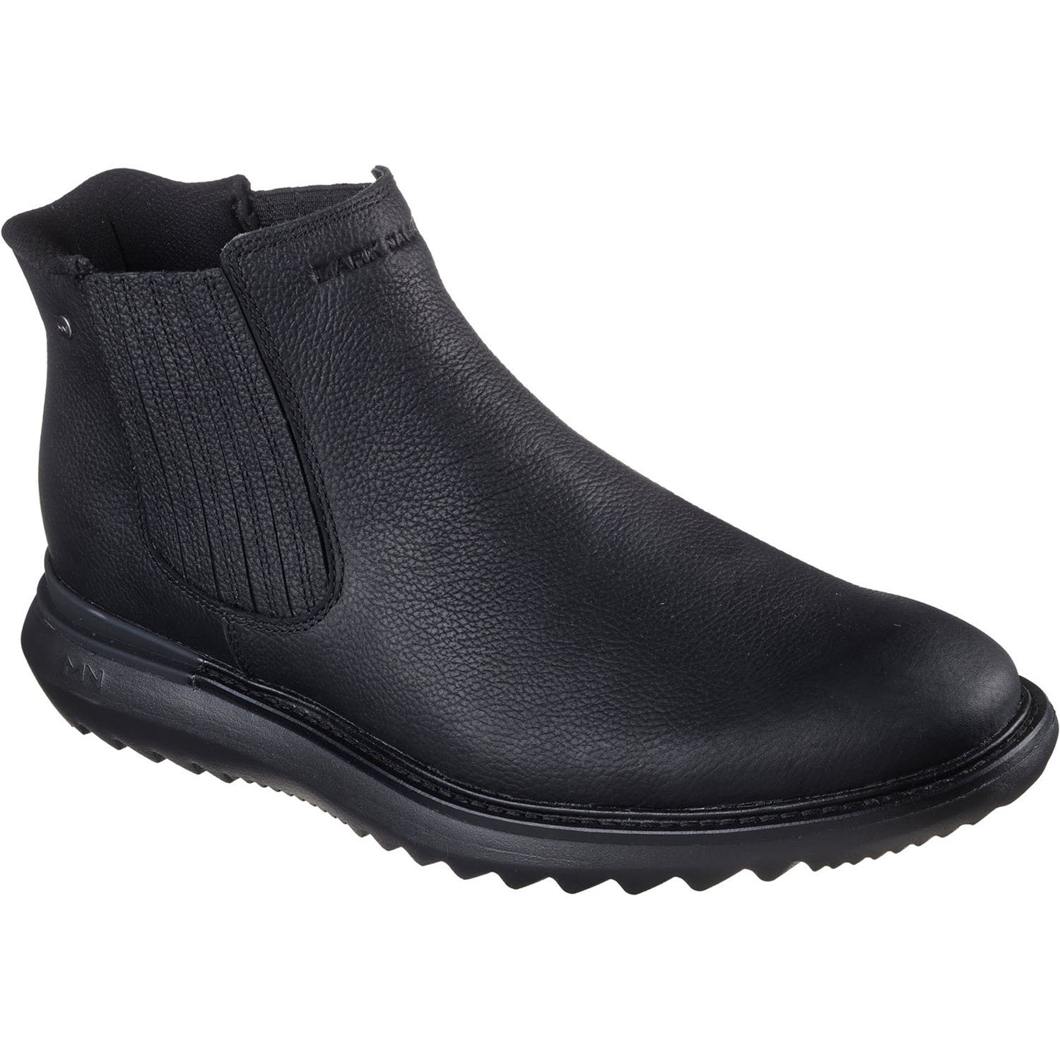 Elevate your style in comfort wearing Skechers Hands Free Slip-ins Mark Nason Skechers: Mako - Julien. Designed with our exclusive Heel Pillow, this slip-on Chelsea dress boot features a genuine leather upper and cushioned Memory Foam Lux insole.