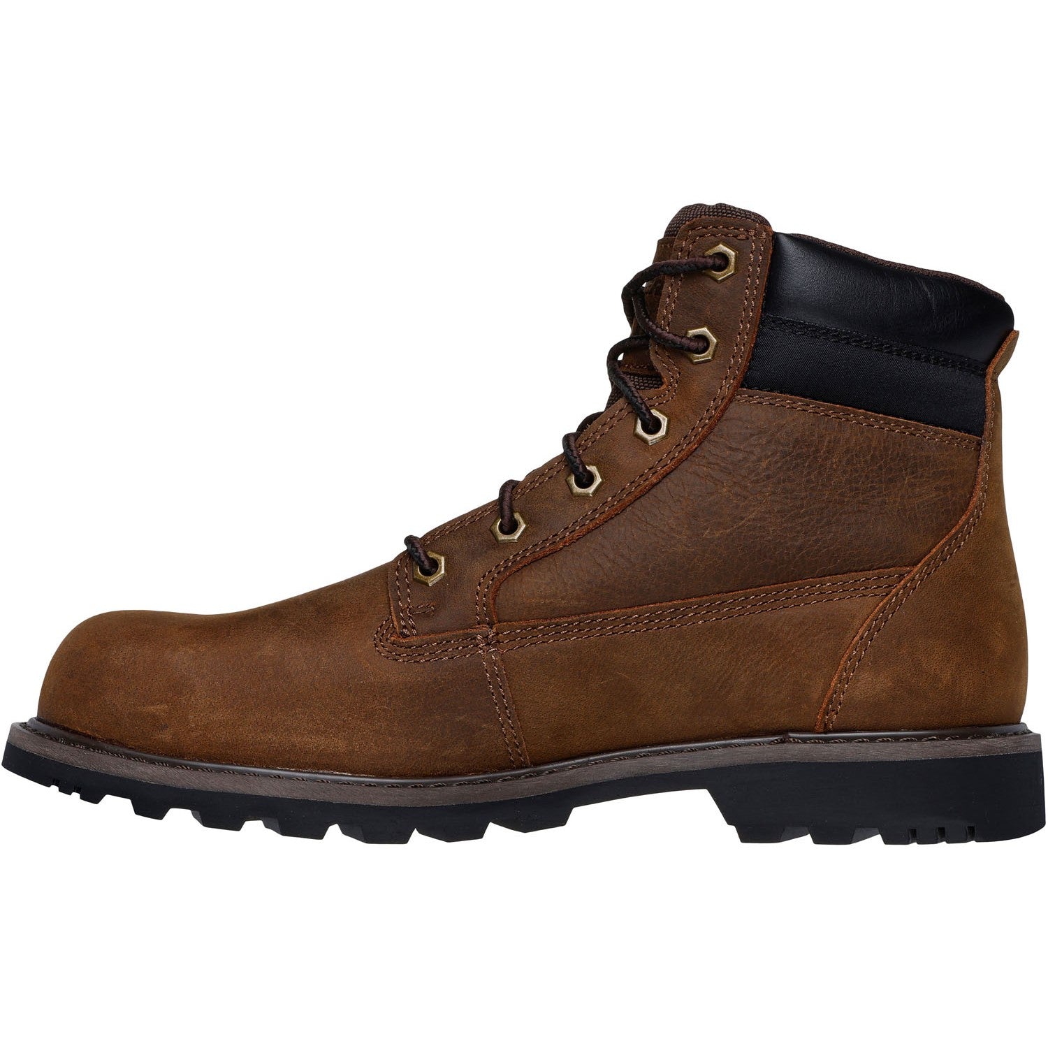 Dependable comfort and safety combine with top-notch style in Skechers Workâ„¢: Longrider. This premium leather lace-up boot features a padded collar, ultra-lightweight Vapor Foamâ„¢ insole cushioning, a heat, oil, and slip resistant outsole, plus a steel safety toe.