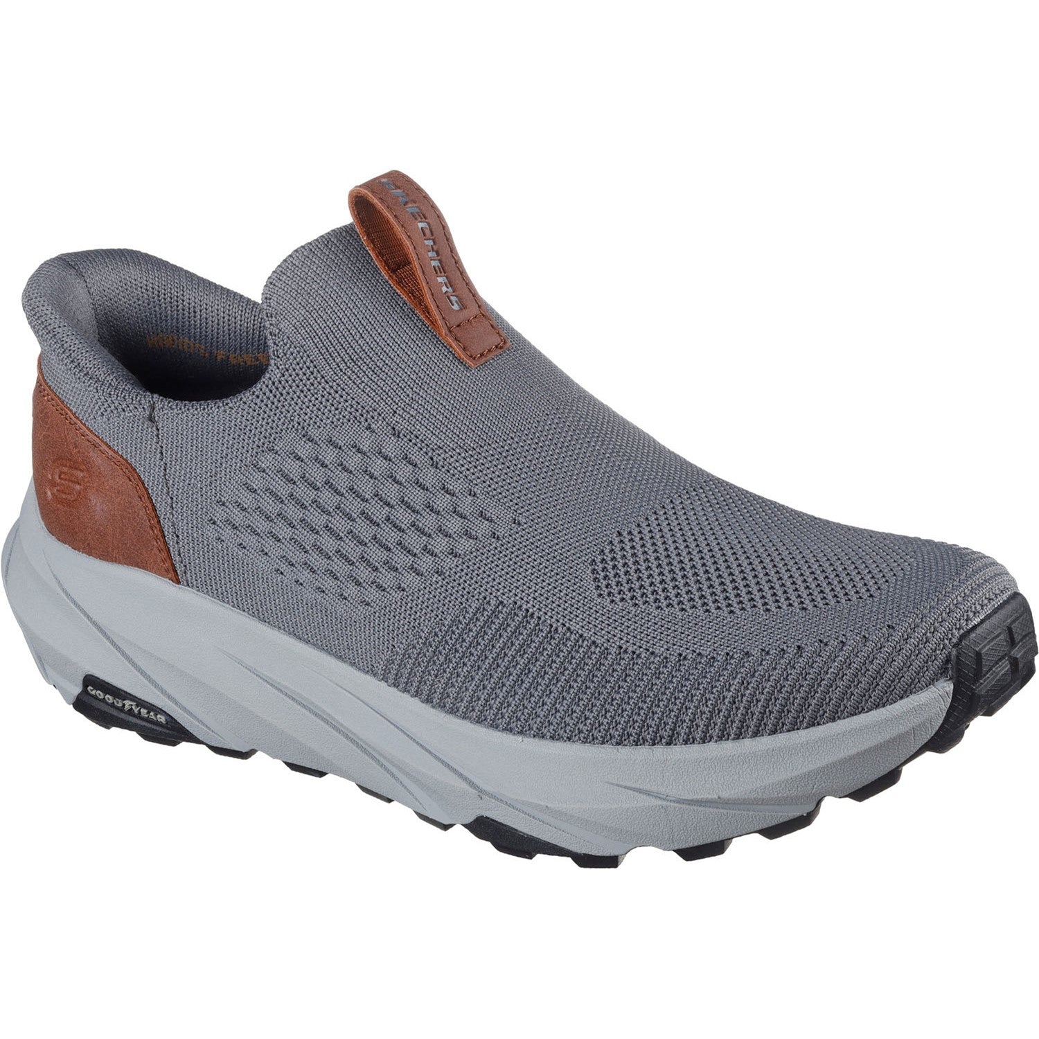 Step up your walking style in casual comfort wearing Skechers Hands Free Slip-ins Relaxed Fit: Conner - Milton. This laceless vegan slip-on features a knit and synthetic upper with a pull tab, a cushioned charcoal-infused Skechers Air-Cooled Memory Foam insole, Memory Arch cushioning for added support, plus an anti-slip Goodyear Rubber Outsole.