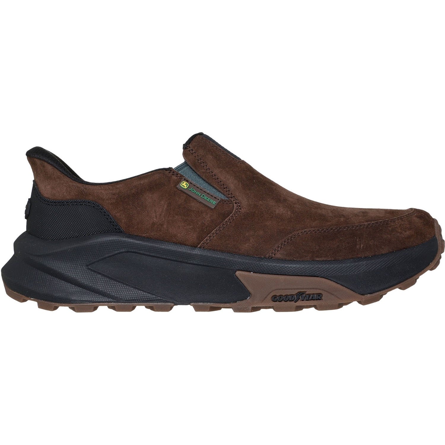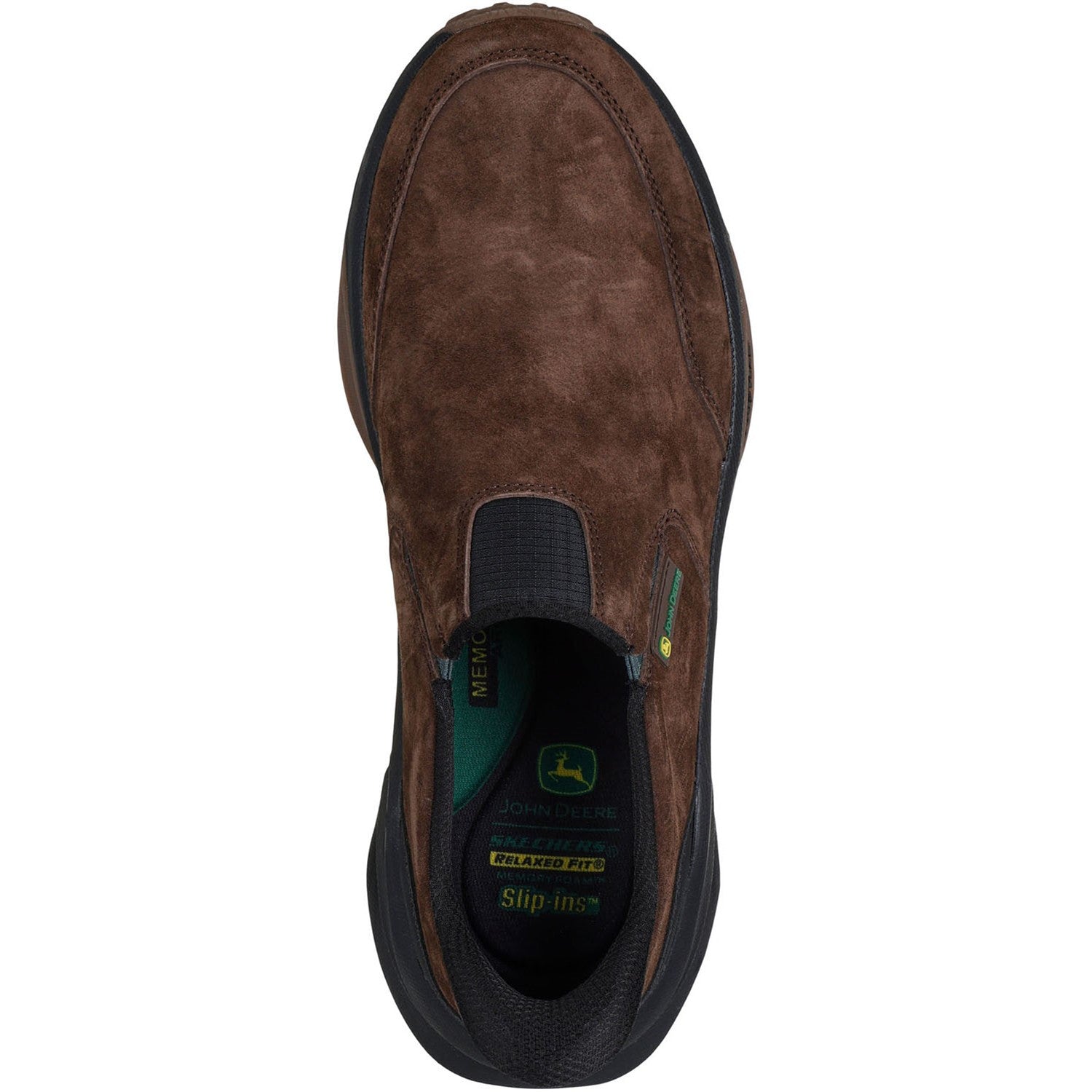 Stay supported in all-day comfort with Skechers Hands Free Slip-ins Relaxed Fit x John Deere: Knox - Renzo. This roomy, rugged slip-on features a pigskin nubuck and synthetic upper, a cushioned Skechers Air-Cooled Memory Foam insole, and a high-traction Goodyear Rubber outsole. Two iconic American brands, trusted for quality and innovation, unite to bring uncompromising durability and comfort. Fusing John Deere's rich heritage with Skechers' comfort technologies, this style delivers the perfect blend of style and durability for work, outdoors and the street.
