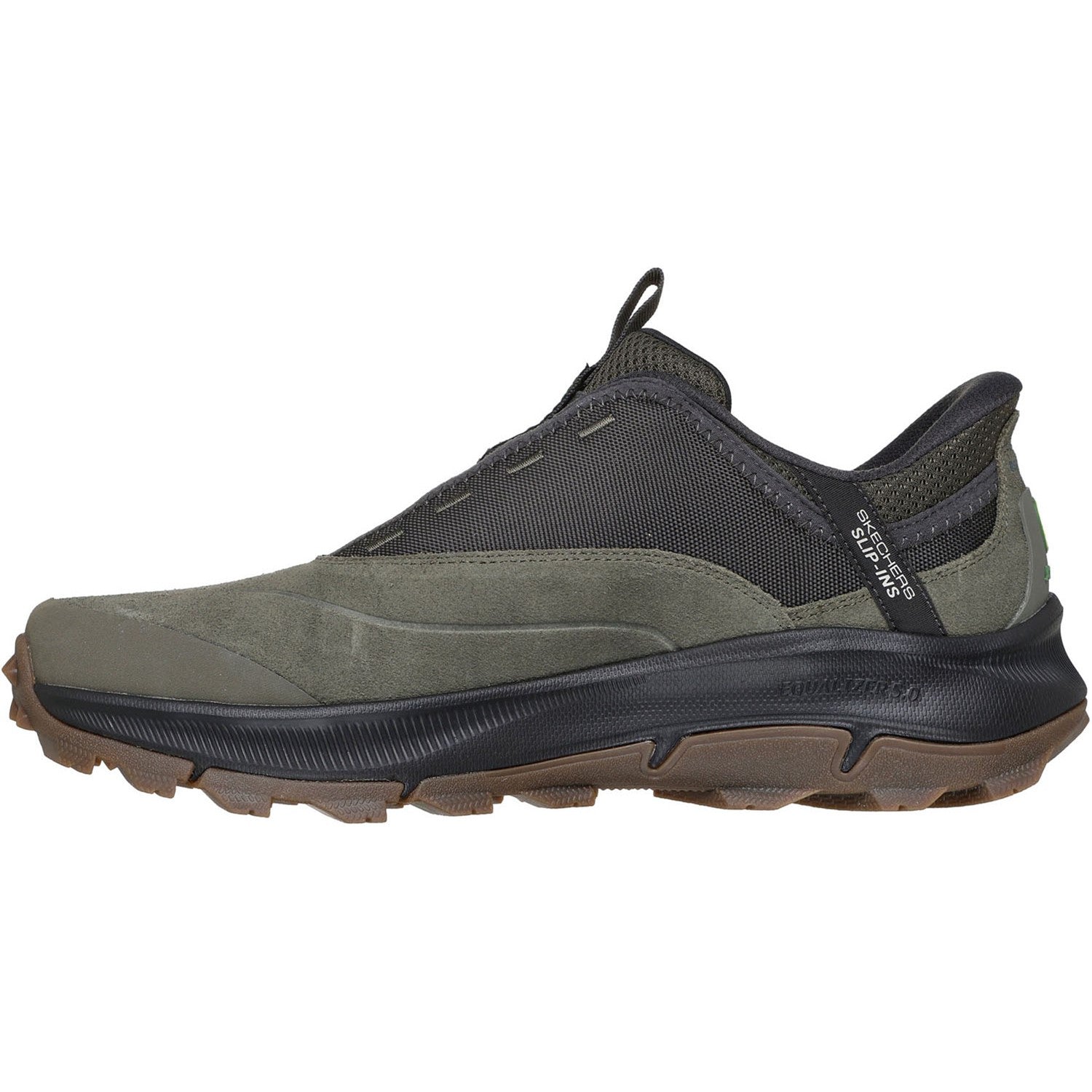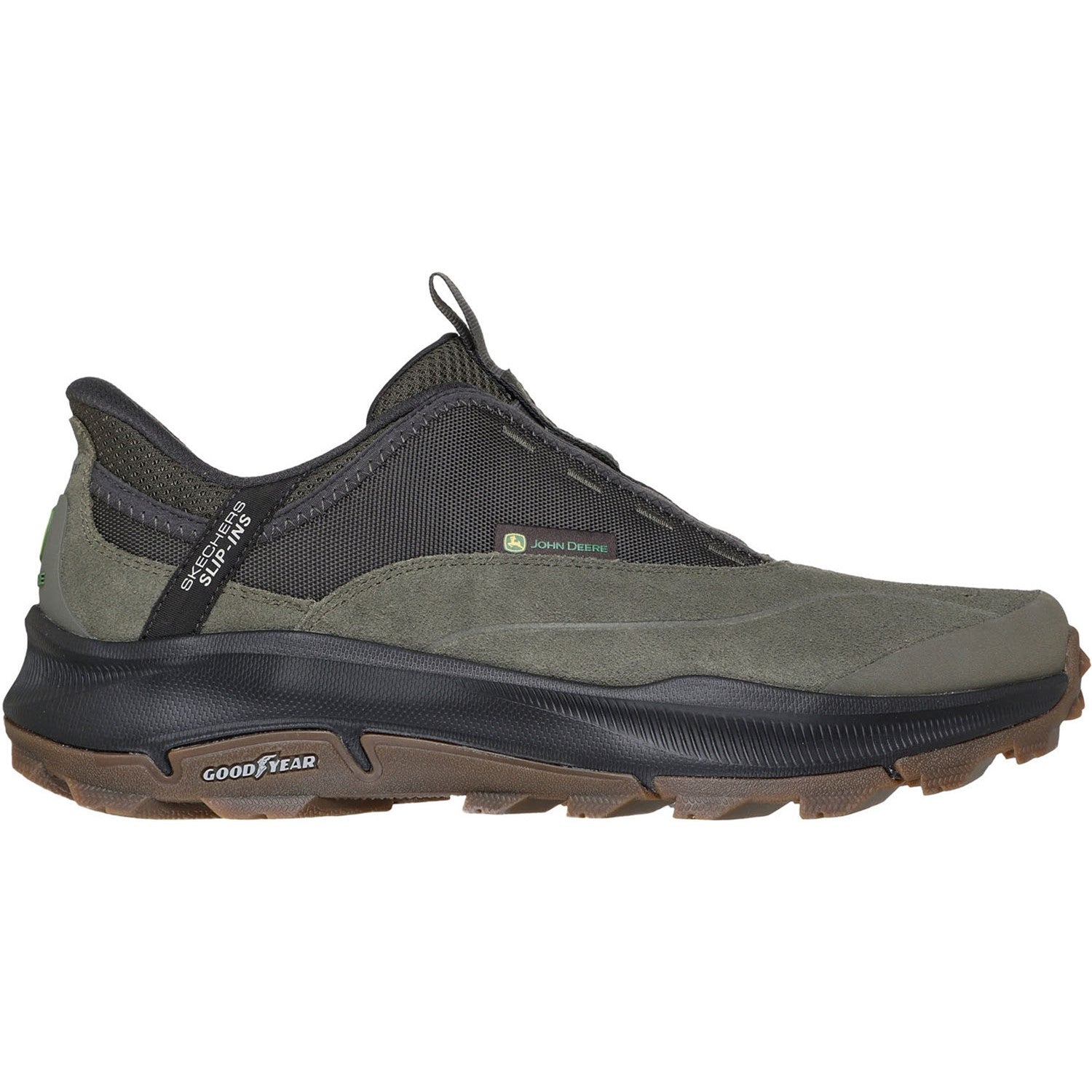 Stay Supported In All-Day Comfort With Skechers Hands Free Slip-Ins X John Deere: Equalizer 5.0 Trail - Ridge Harvest. This Relaxed Fit All-Terrain Slip-On Is Designed With Our Heel Pillow And Features A Suede And Mesh Upper In A Laceless Fit, A Skechers Air-Cooled Memory Foam Insole, And A Durable Goodyear Rubber Outsole.