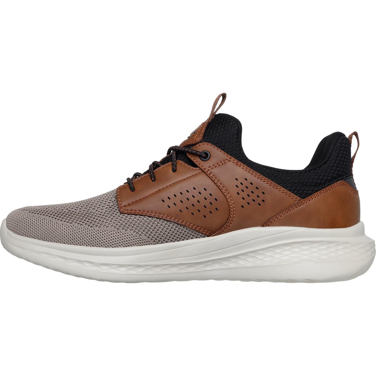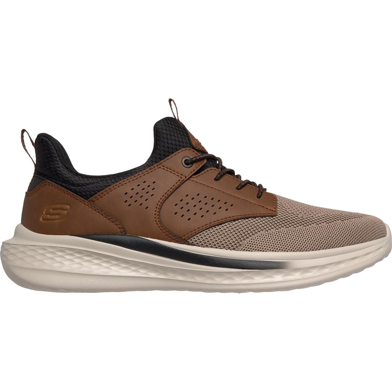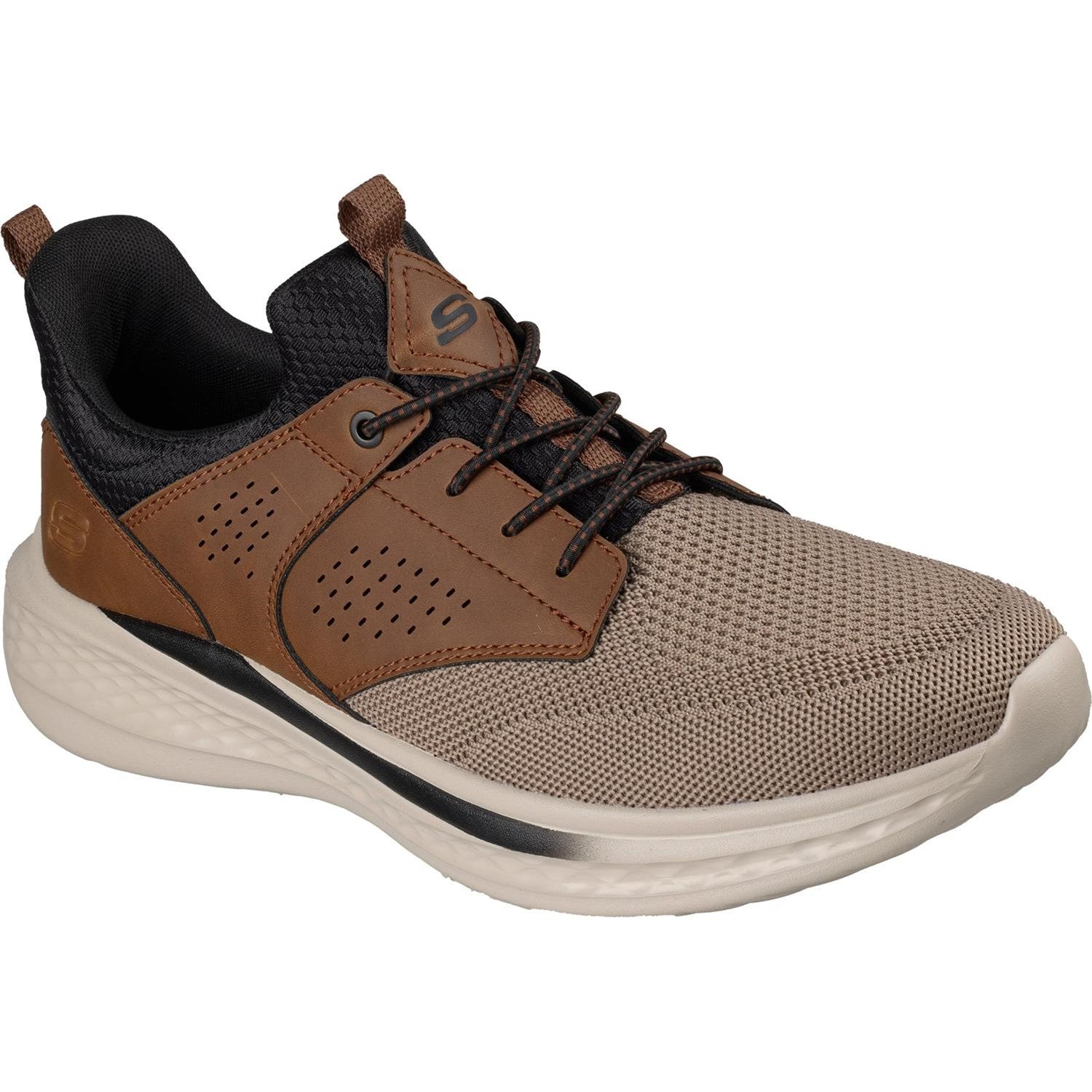 Classic modern style combines with comfort in Skechers Relaxed Fit: Slade - Breyer. This stretch-laced vegan style features a mesh and synthetic upper with a charcoal-infused Skechers Air-Cooled Memory Foam insole and a Skechers Goga Mat Archâ„¢ for added support.