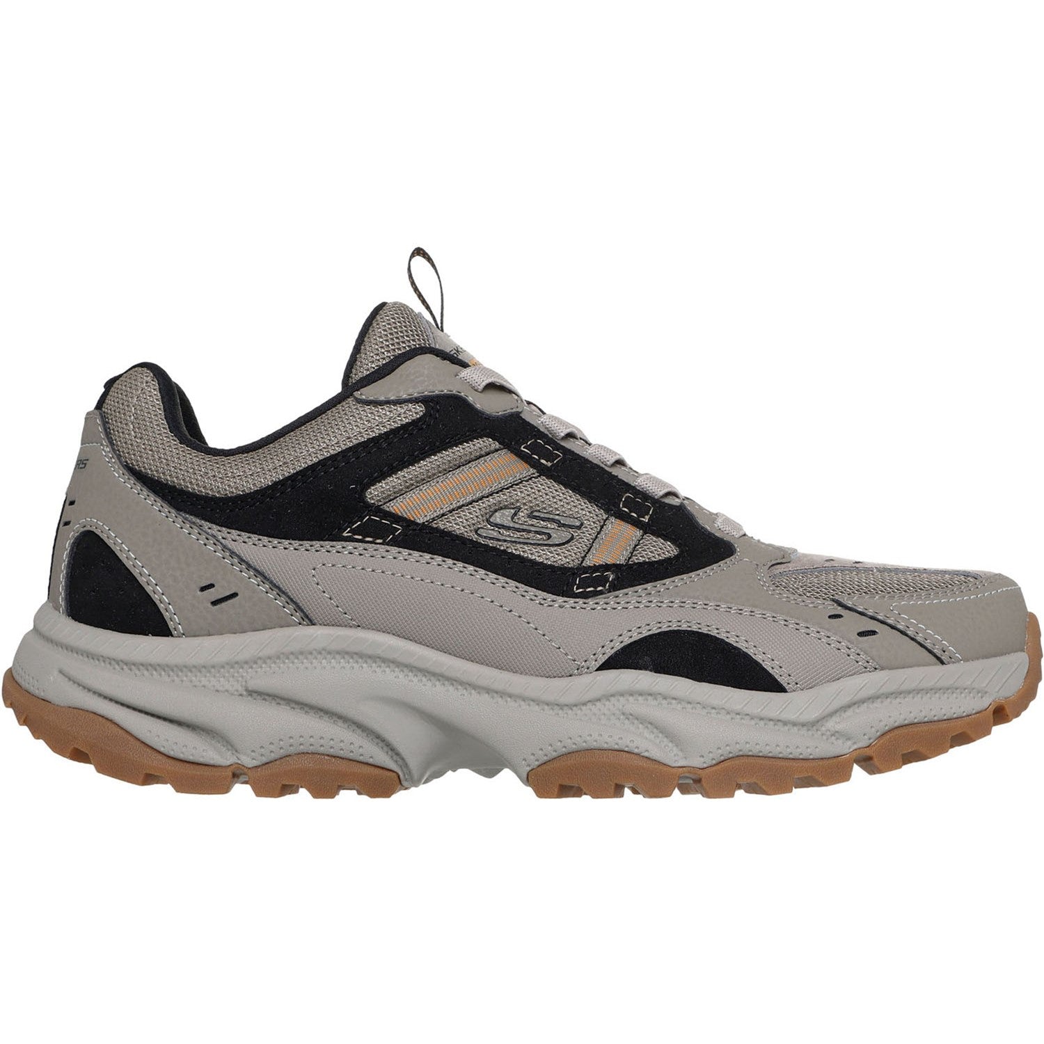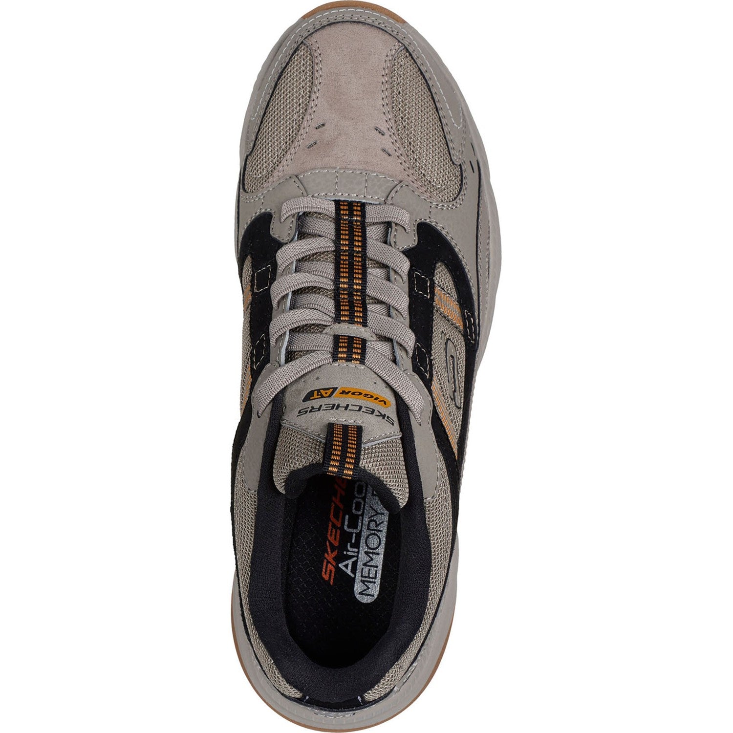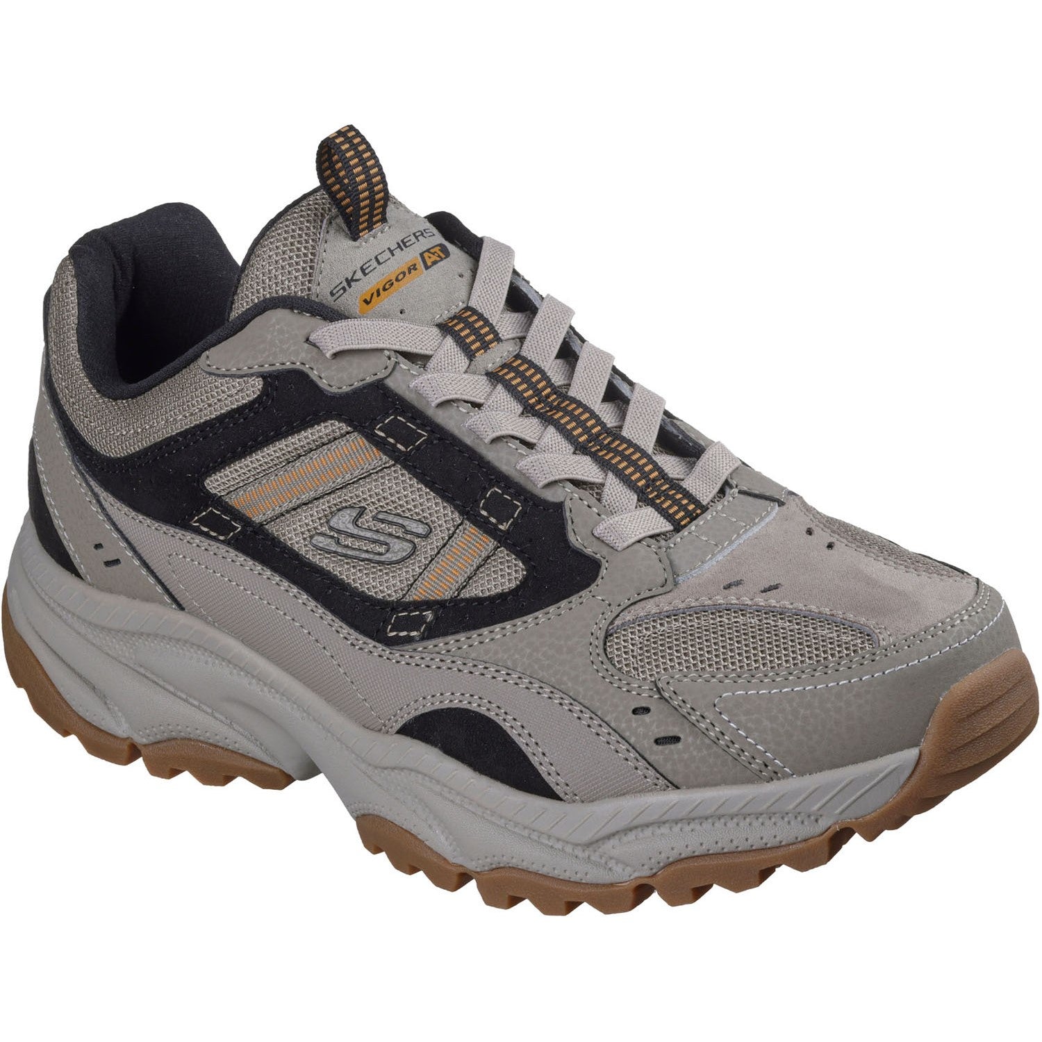 Reach to new heights of comfort in Skechers Vigor AT - Three Corners. This outdoor trail design features a suede and synthetic upper with stretch laces and a cushioned Skechers Air-Cooled Memory Foam comfort insole.