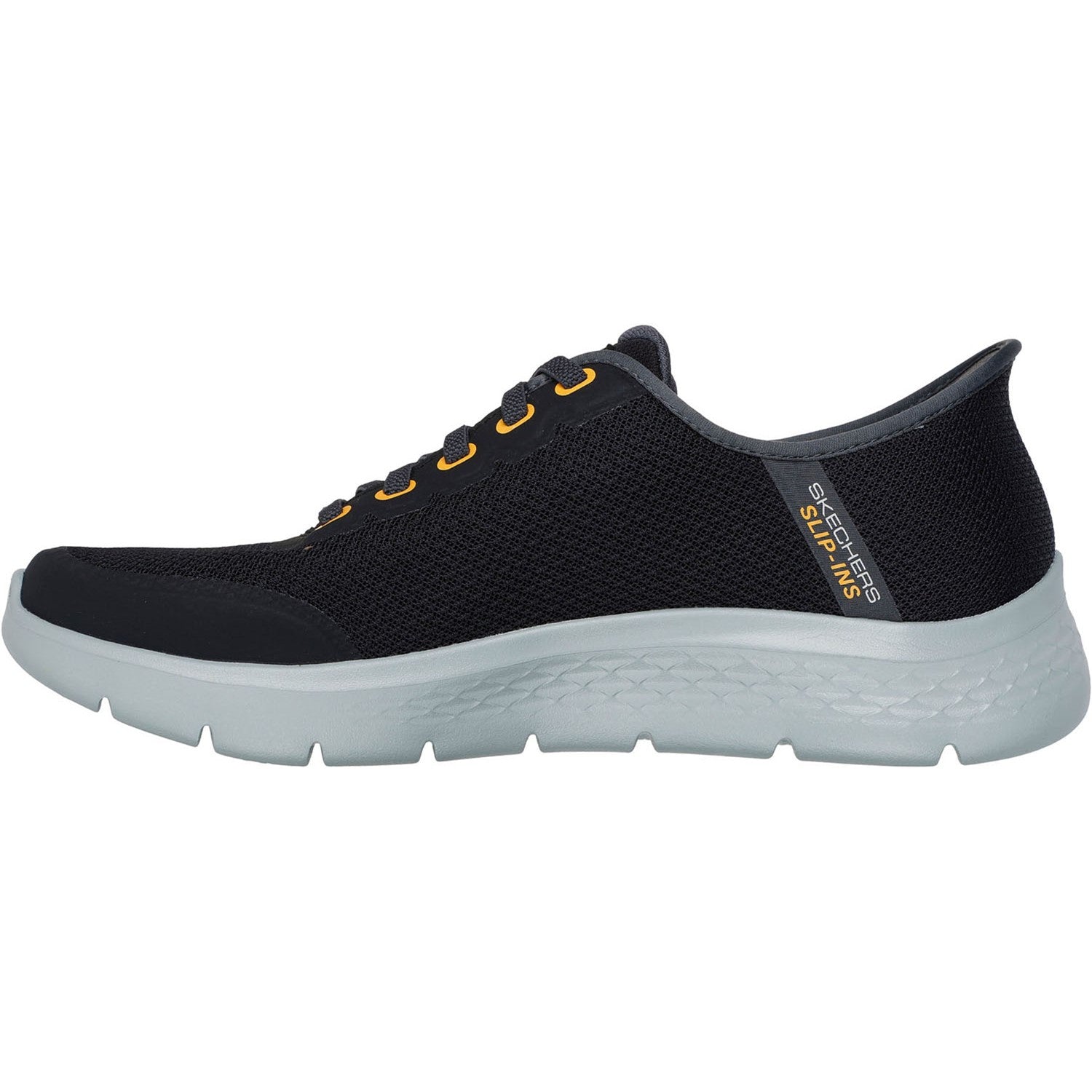 Just step and go in flexible comfort and style wearing Skechers Hands Free Slip-ins GO WALK Flex - Netro. Designed with our exclusive Heel Pillowâ„¢, this stretch-laced style features a mesh knit and synthetic upper, Skechers Air-Cooled Memory Foam insole and a lightweight ULTRA GO cushioned midsole. Learn More About Hands Free Slip-ins Technology