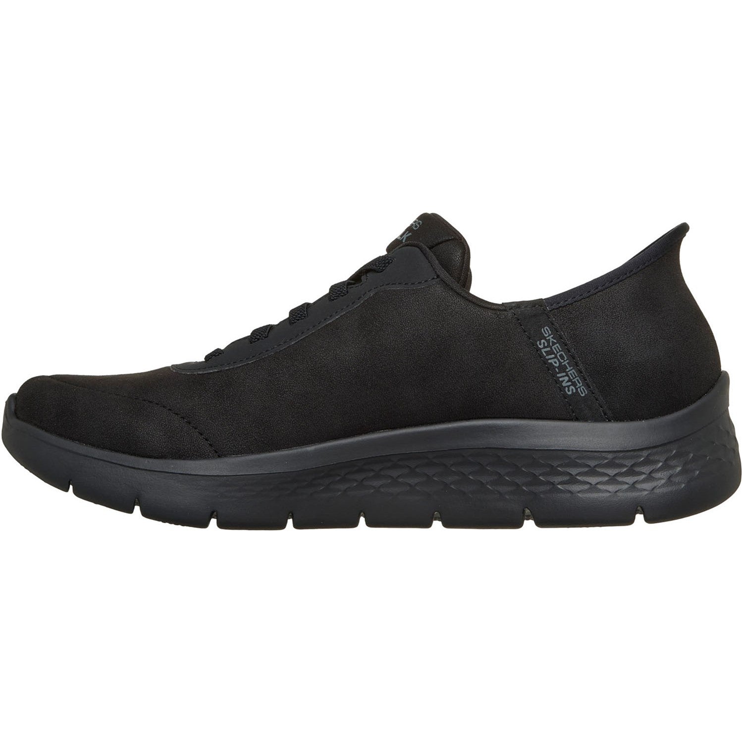 Just Slip Inâ„¢ to flexible comfort and style wearing Skechers Hands Free Slip-ins: GO WALK Flex - Smooth Motion. Designed with our exclusive Heel Pillowâ„¢, this slip-on sneaker features a synthetic leather tex upper with stretch laces, a Skechers Air-Cooled Memory Foam insole, and lightweight ULTRA GO cushioning. Learn More About Hands Free Slip-ins Technology
