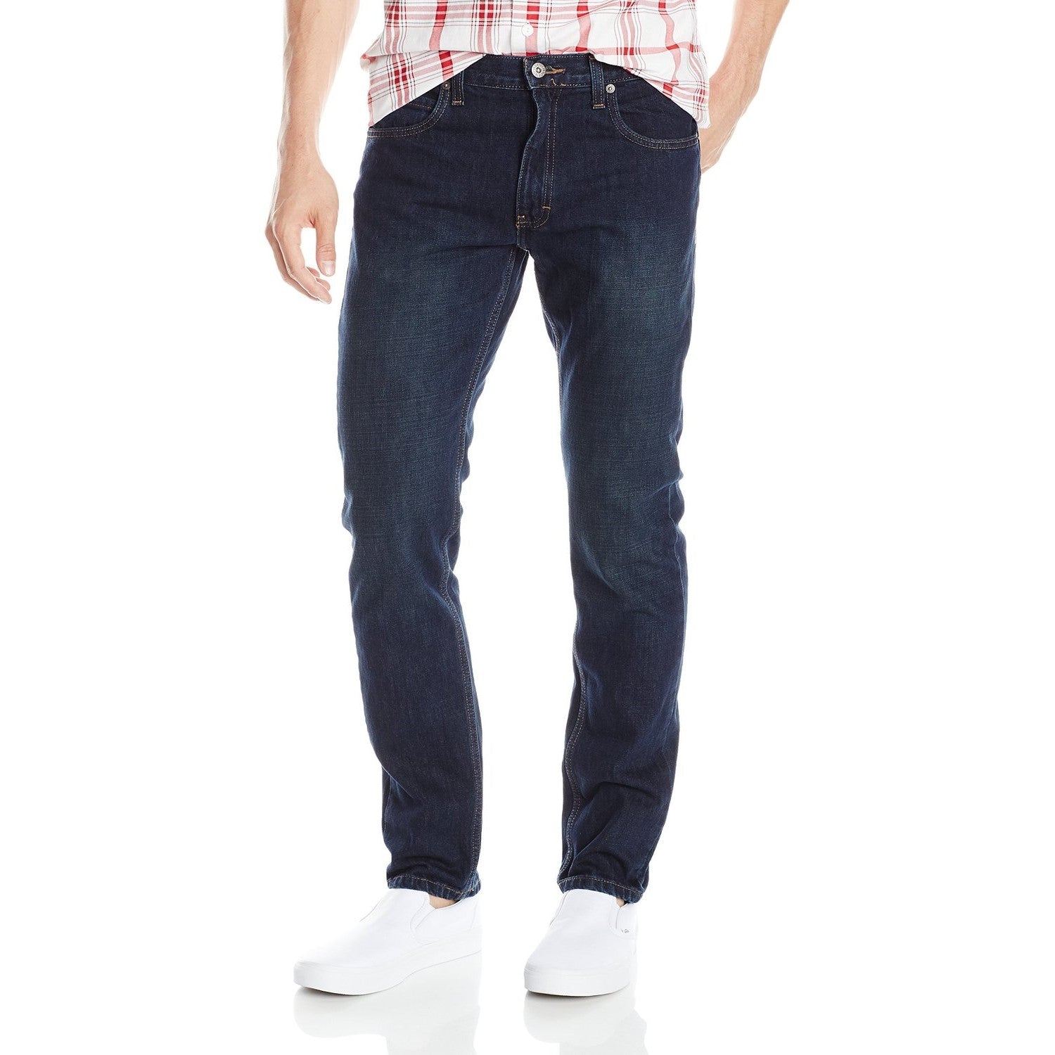 Sits below waist, slim in seat and thigh, tapered leg. Workwear or casualwear, wear these jeans everywhere.
