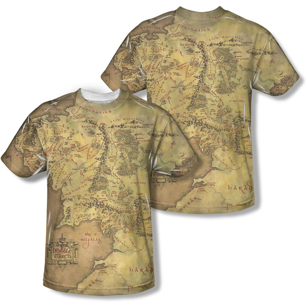 Lord Of The Rings - Mens Middle Earth Map (Front/Back Print) T-Shirt