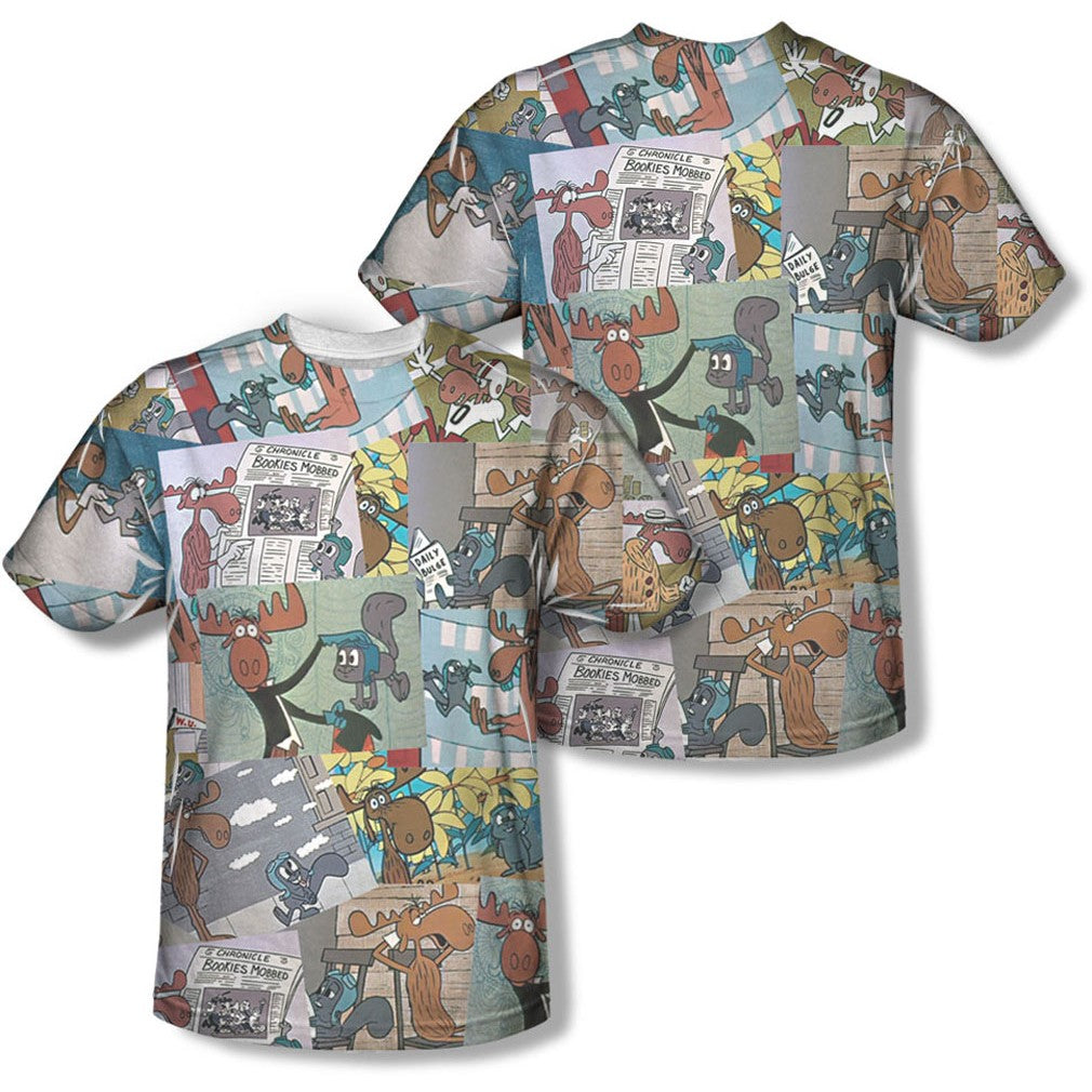 Rocky & Bullwinkle - Mens Collage (Front/Back Print) T-Shirt