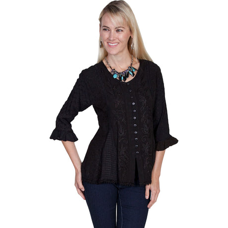 $89.00Unit price /UnavailableSpecial OrderSpecial order items take extra time to ship out. Add this to your cart to see an estimated shipment date.Scully - Womens Short Sleeve Emb. Blouse
