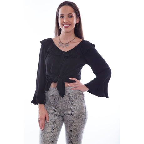 $83.00Unit price /UnavailableSpecial OrderSpecial order items take extra time to ship out. Add this to your cart to see an estimated shipment date.Scully - Womens Ruffle Lace Up Blouse
