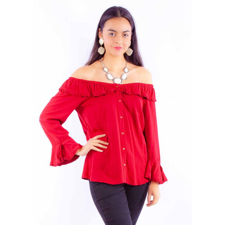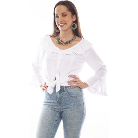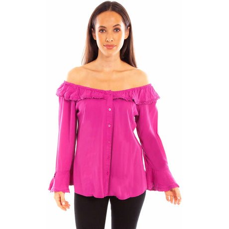$63.00Unit price /UnavailableSpecial OrderSpecial order items take extra time to ship out. Add this to your cart to see an estimated shipment date.Scully - Womens Ruffle Off/On Shoulder Blouse