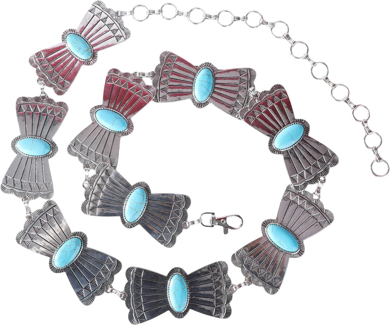 Rustic Couture - Womens Copper Mariposa Concho Link Chain Belt With White Inlays