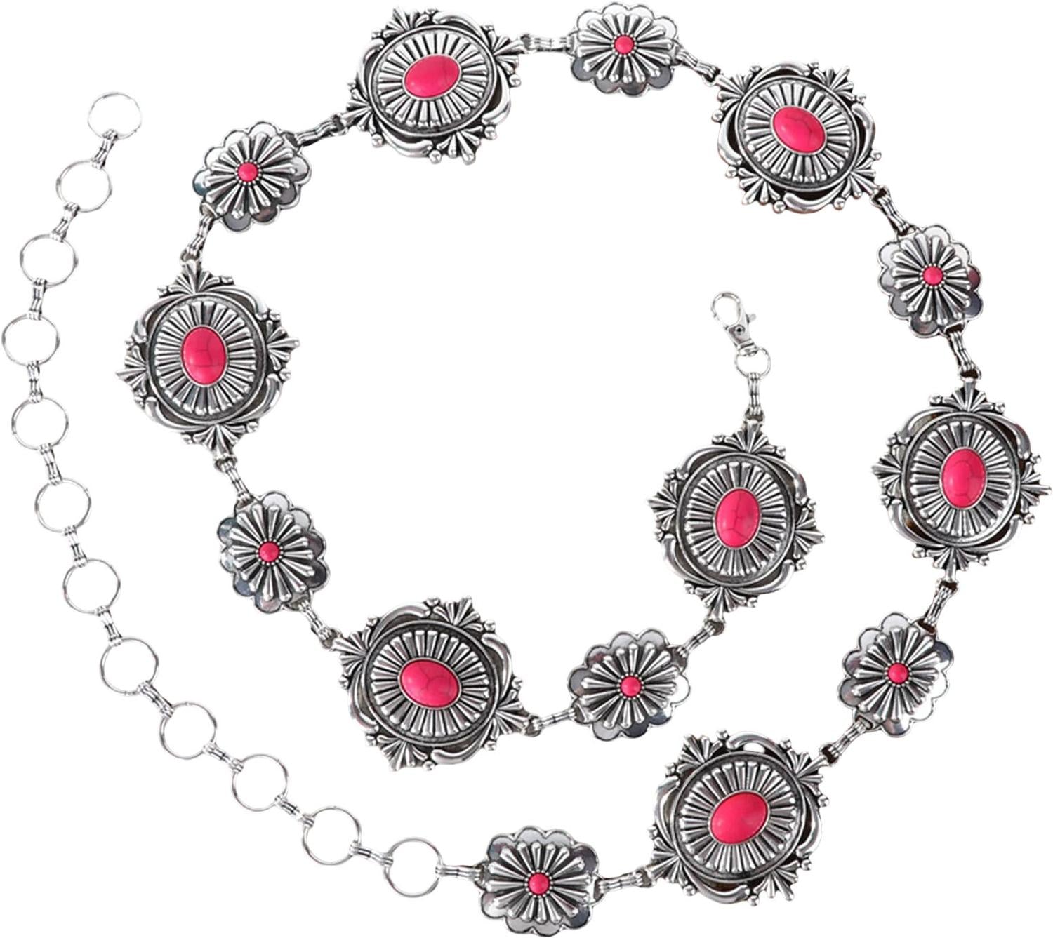 Rustic Couture - Womens Etched Oval Concho Link Chain Belt