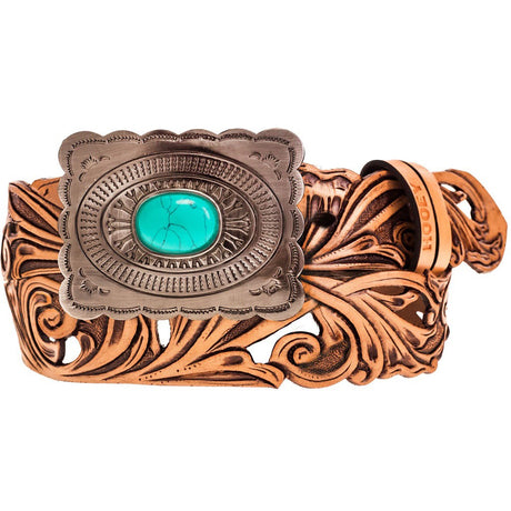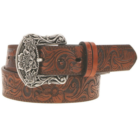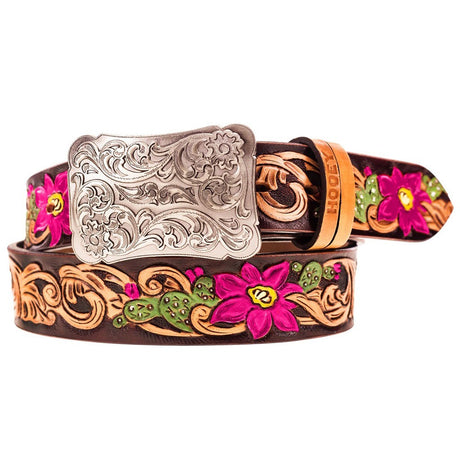 Hooey - Womens Sonoma 1.5 Floral Hand-Tooled Leather Belt With Buckstitch
