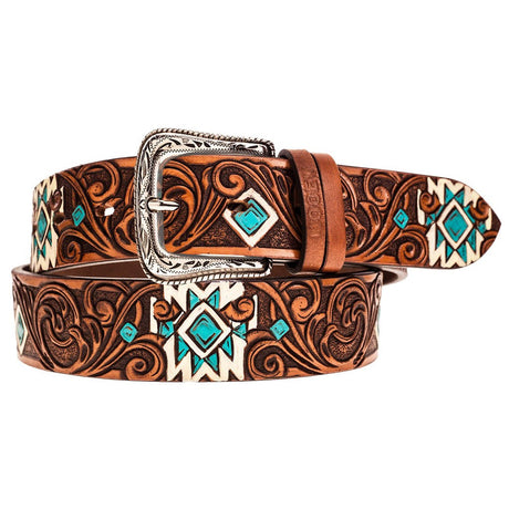 $68.00Unit price /UnavailableSpecial OrderSpecial order items take extra time to ship out. Add this to your cart to see an estimated shipment date.Hooey - Womens Dyani 1.5 Leather Filigree Belt With Hand Painted & Aztec Accents