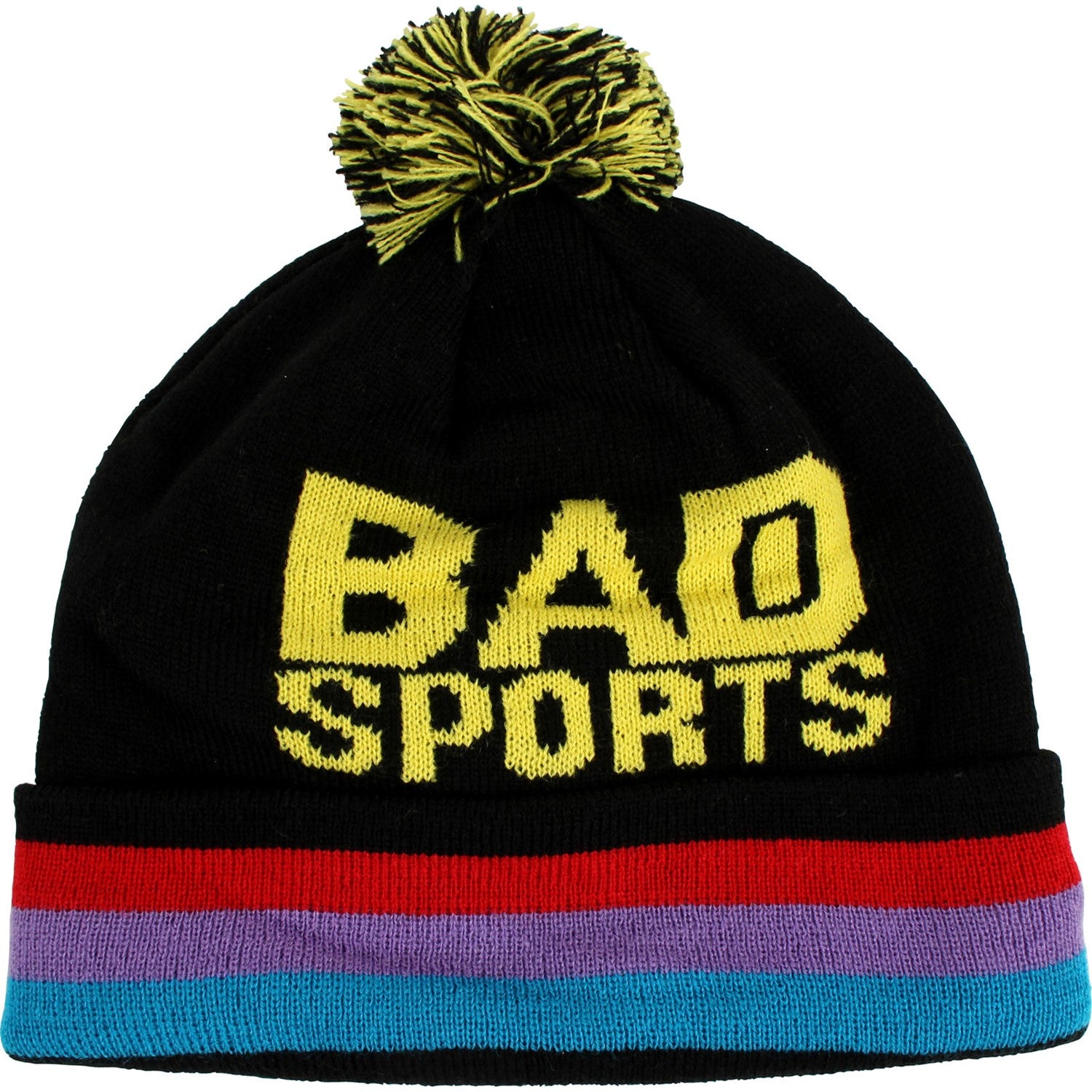 Undefeated coming through with the Bad Sports logo beanie. Features tri-color fold up band with knit logo and pom on top.