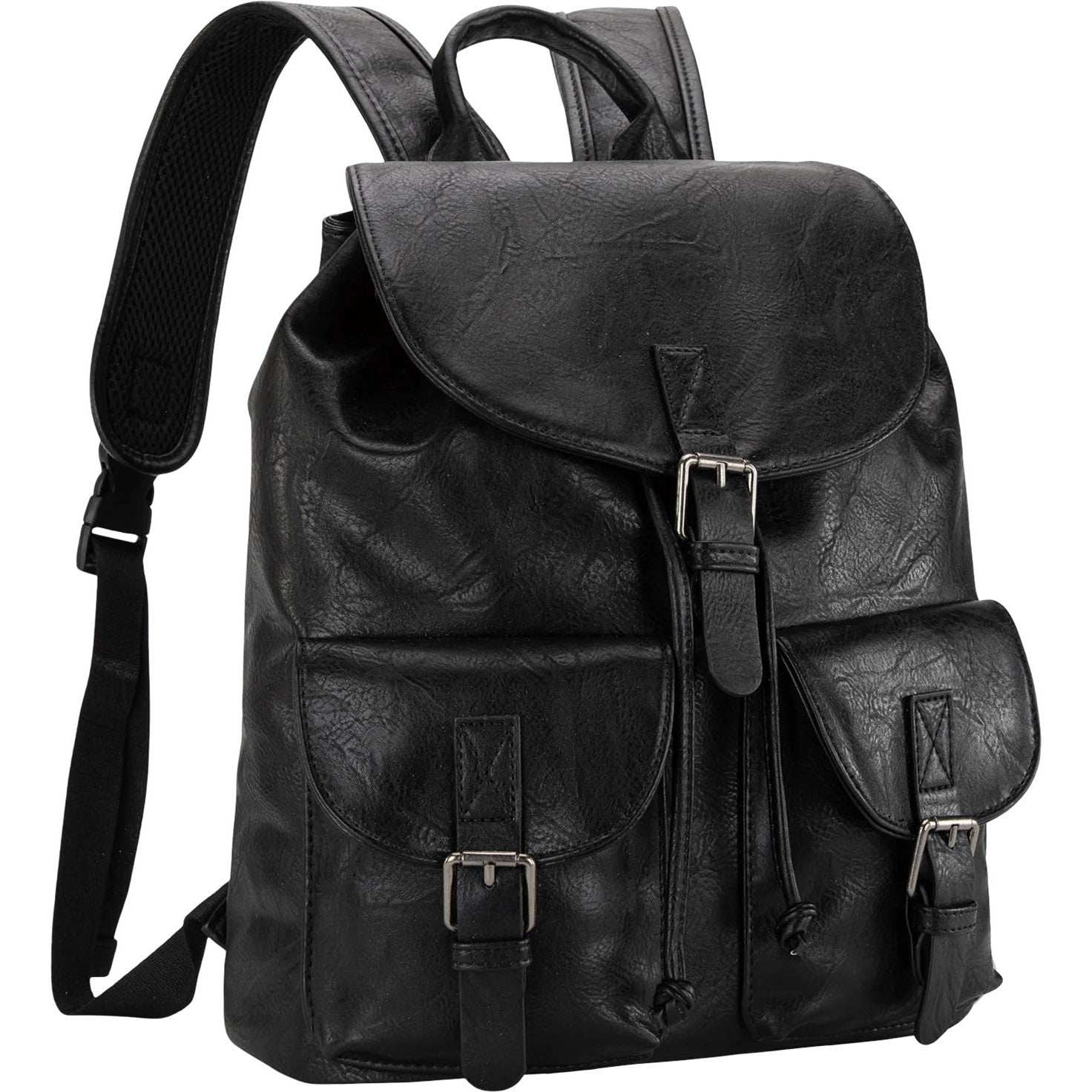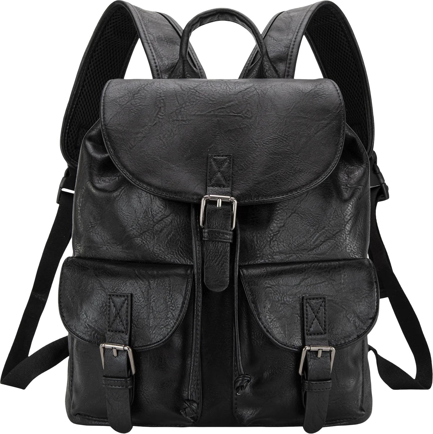 Made Of Pu Leather, This Backpack Has: Belt Buckle On The Flap With Magnetic Button Closure Dual Flap Close Pocket On The Front Top Handle (Drop 3") Drawstring And Button Closure Inside Of The Bag Includes A Zippered Pocket And 2 Open Pockets Inside Of Bag Include Apadded Compartment For Your Electronics A Padded Air