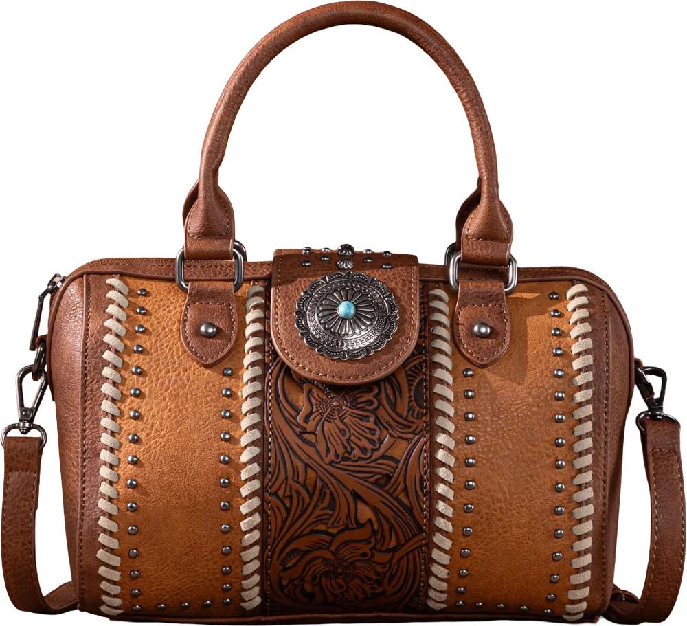 Montana West - Womens Tooled Concho Barrel Satchel Bag/Crossbody Bag
