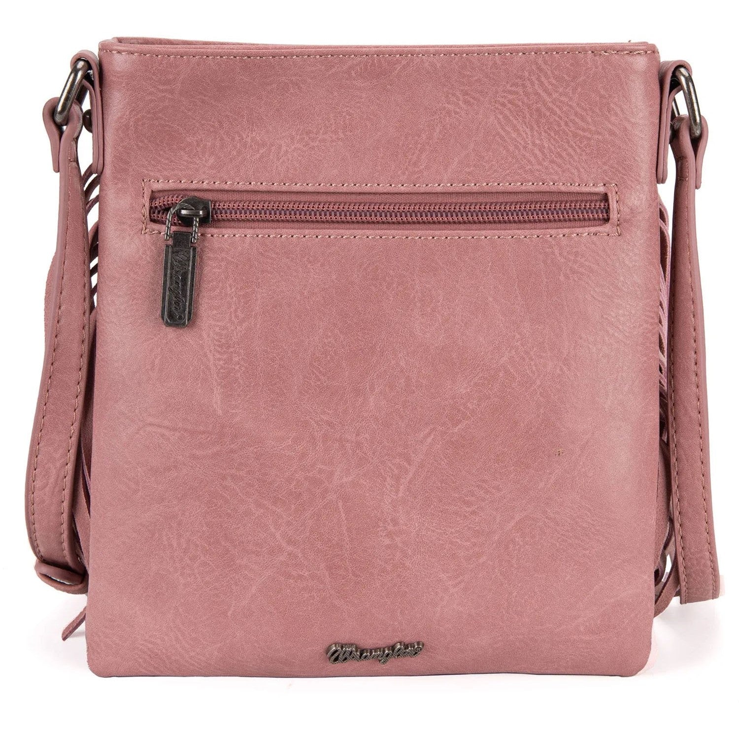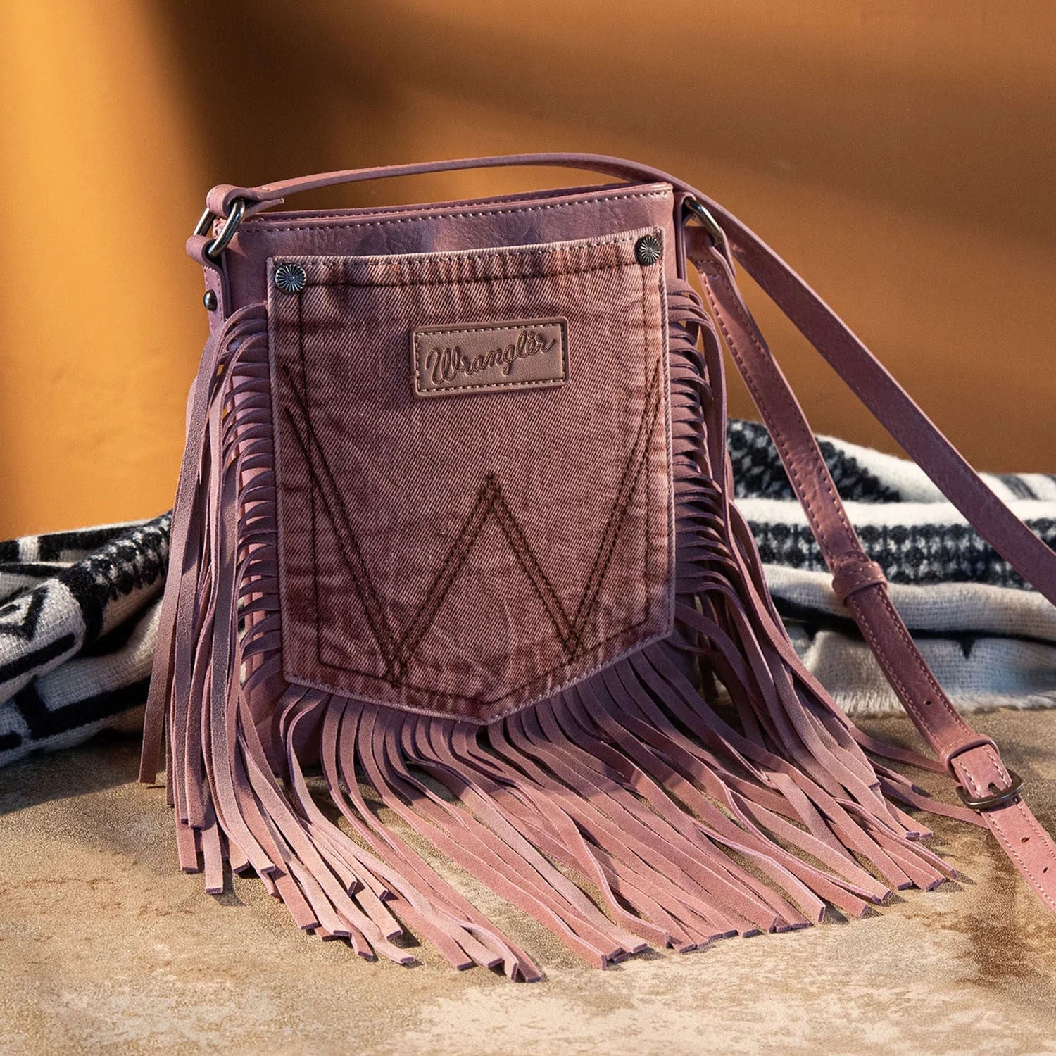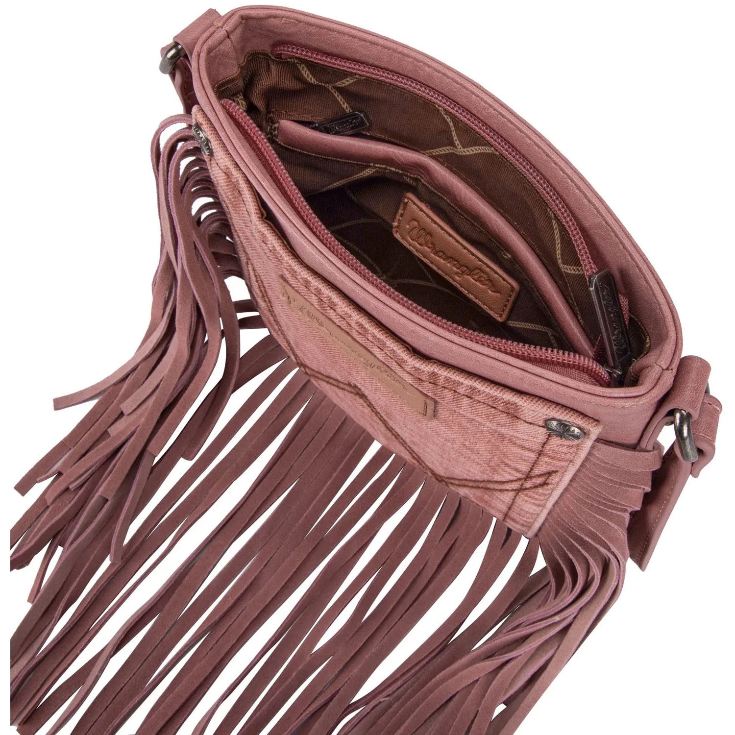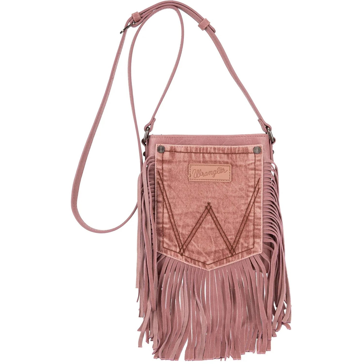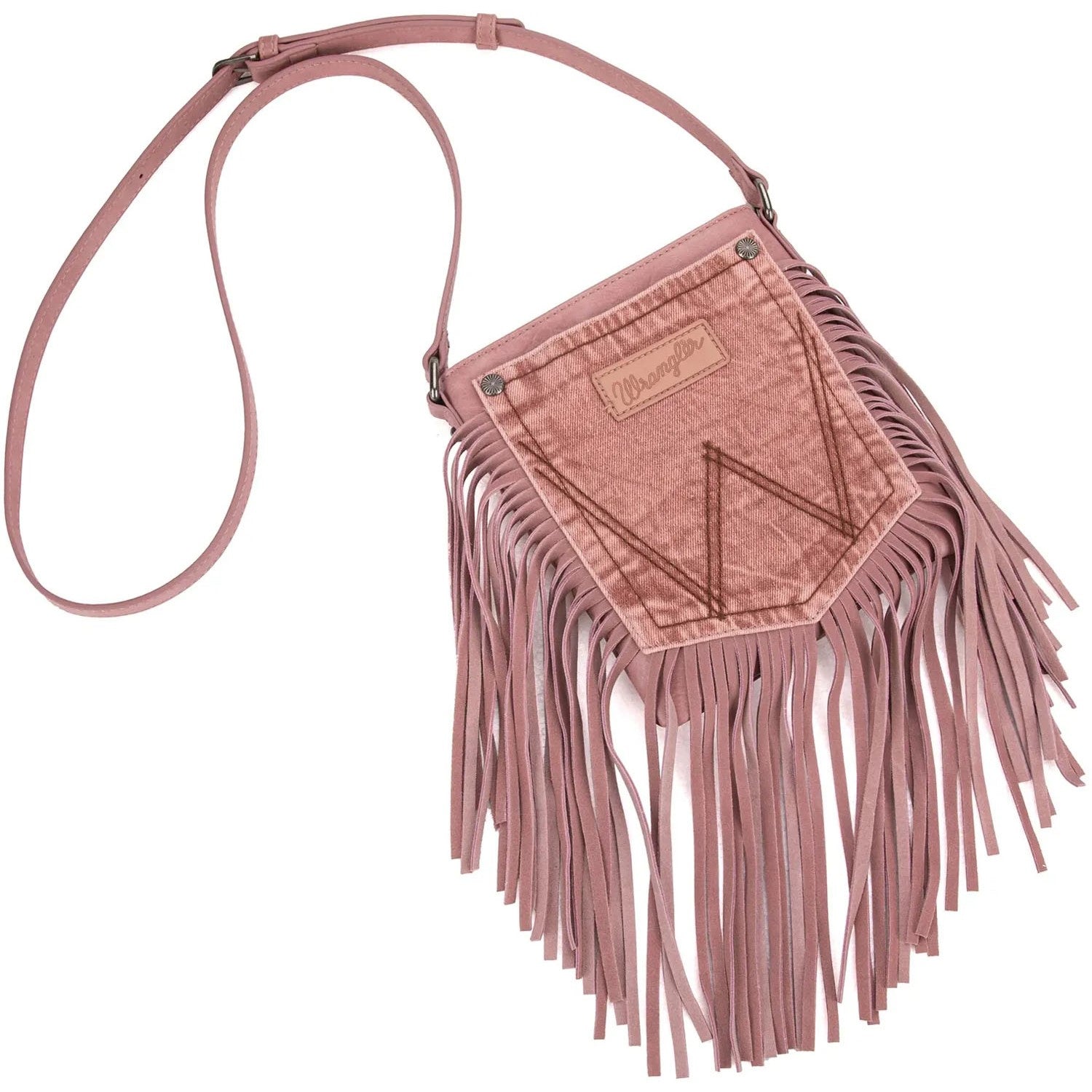 Wrangler - Womens Leather Fringe Jean Denim Pocket Crossbody Bag