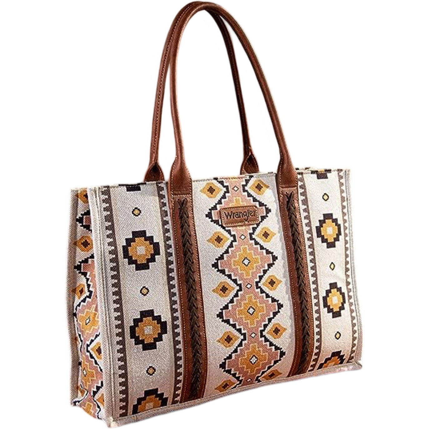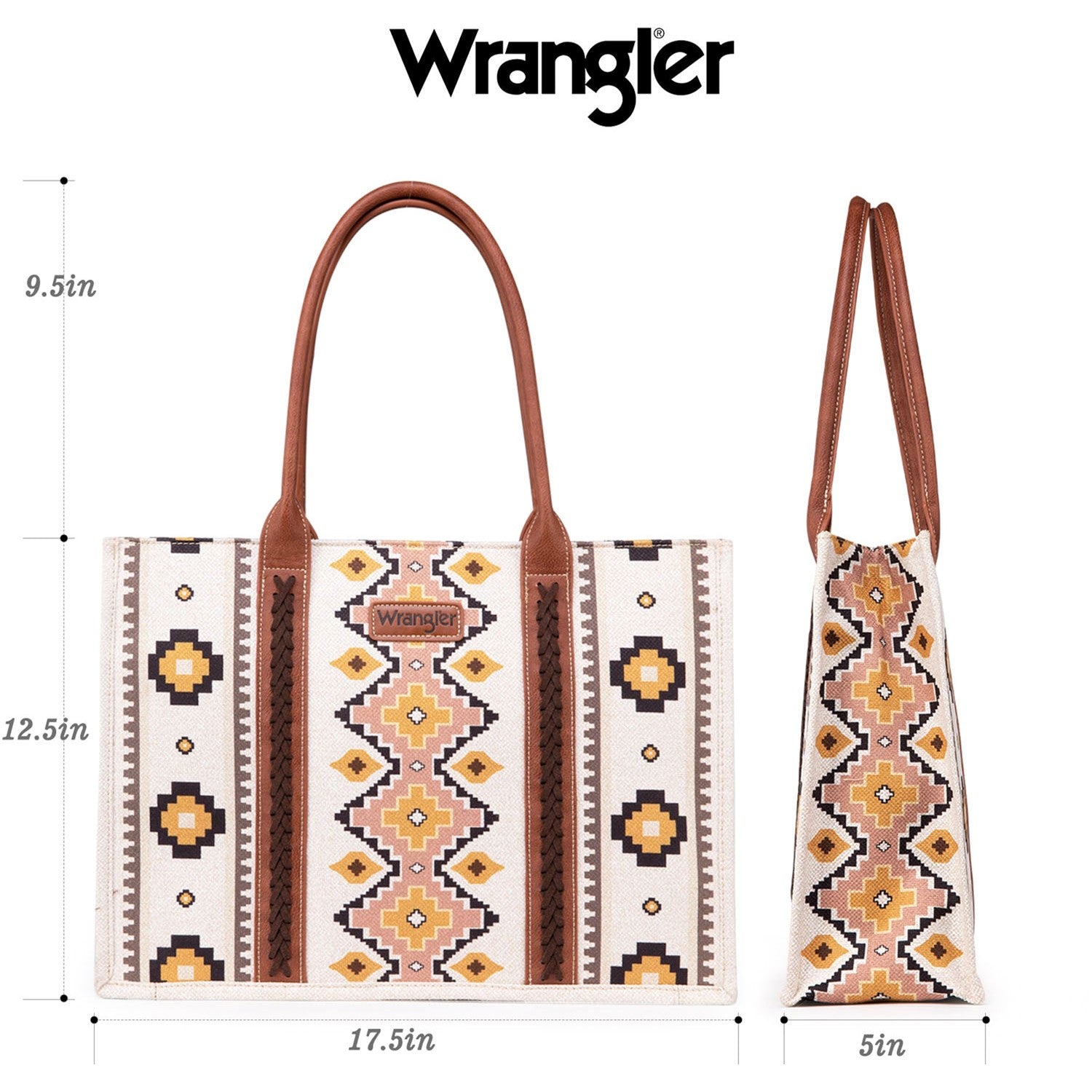 Wrangler Southwestern Pattern Dual Sided Print Canvas Wide Tote