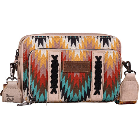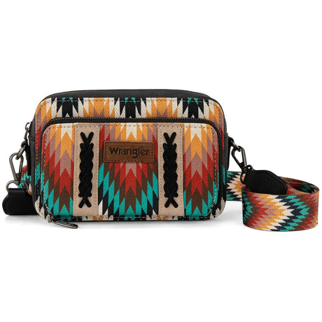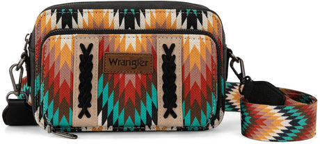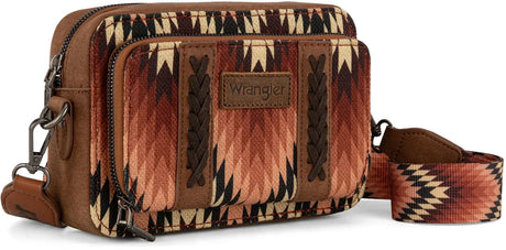$89.98Unit price /UnavailableSpecial OrderSpecial order items take extra time to ship out. Add this to your cart to see an estimated shipment date.Wrangler - Womens Southwestern Pattern Dual Sided Print Crossbody Purse With Wallet Compartment