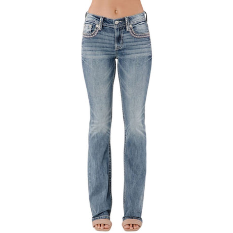 $124.00Unit price /UnavailableSpecial OrderSpecial order items take extra time to ship out. Add this to your cart to see an estimated shipment date.Miss Me - Womens Mid-Rise Bootcut Jeans