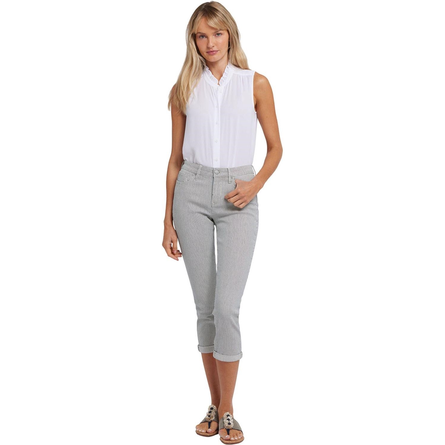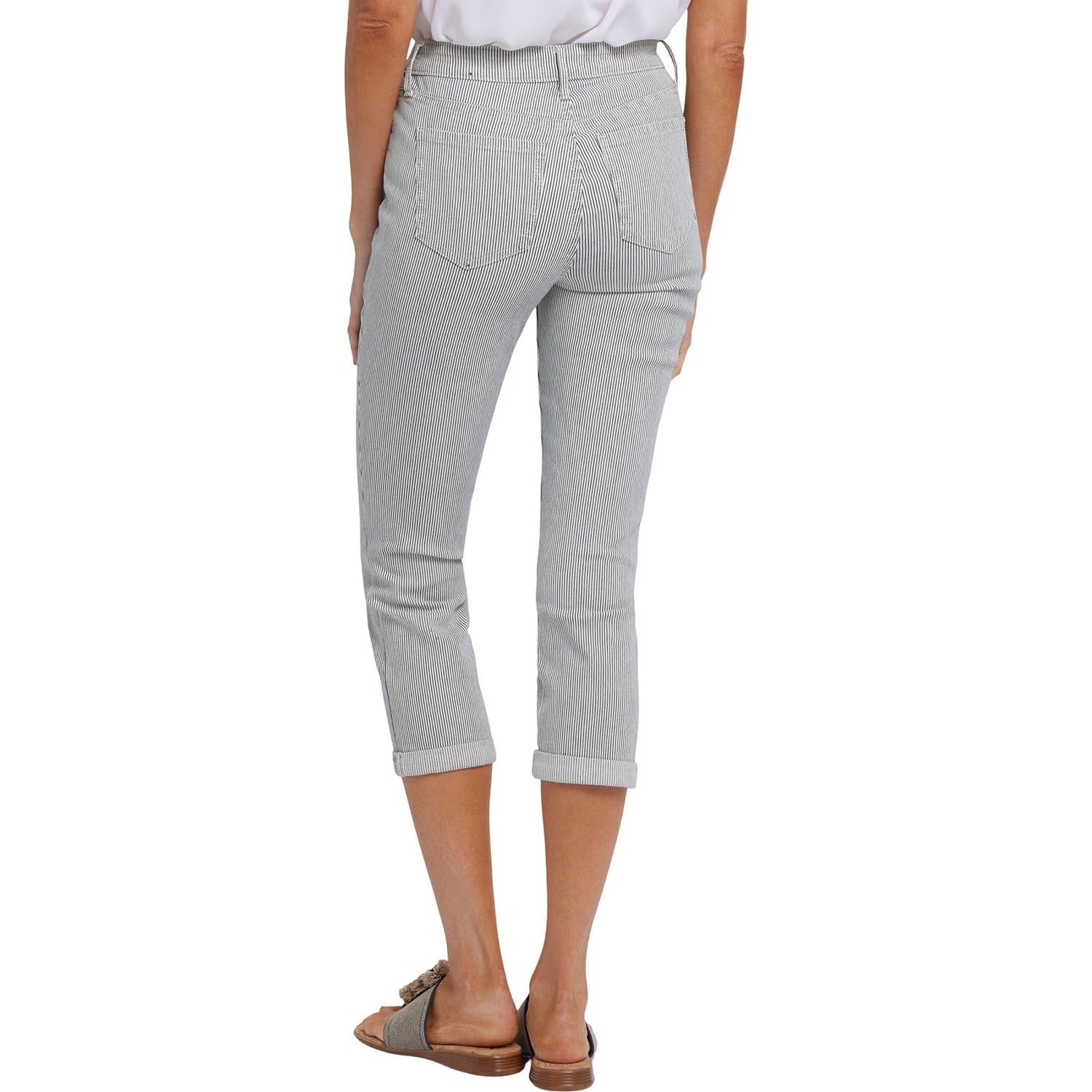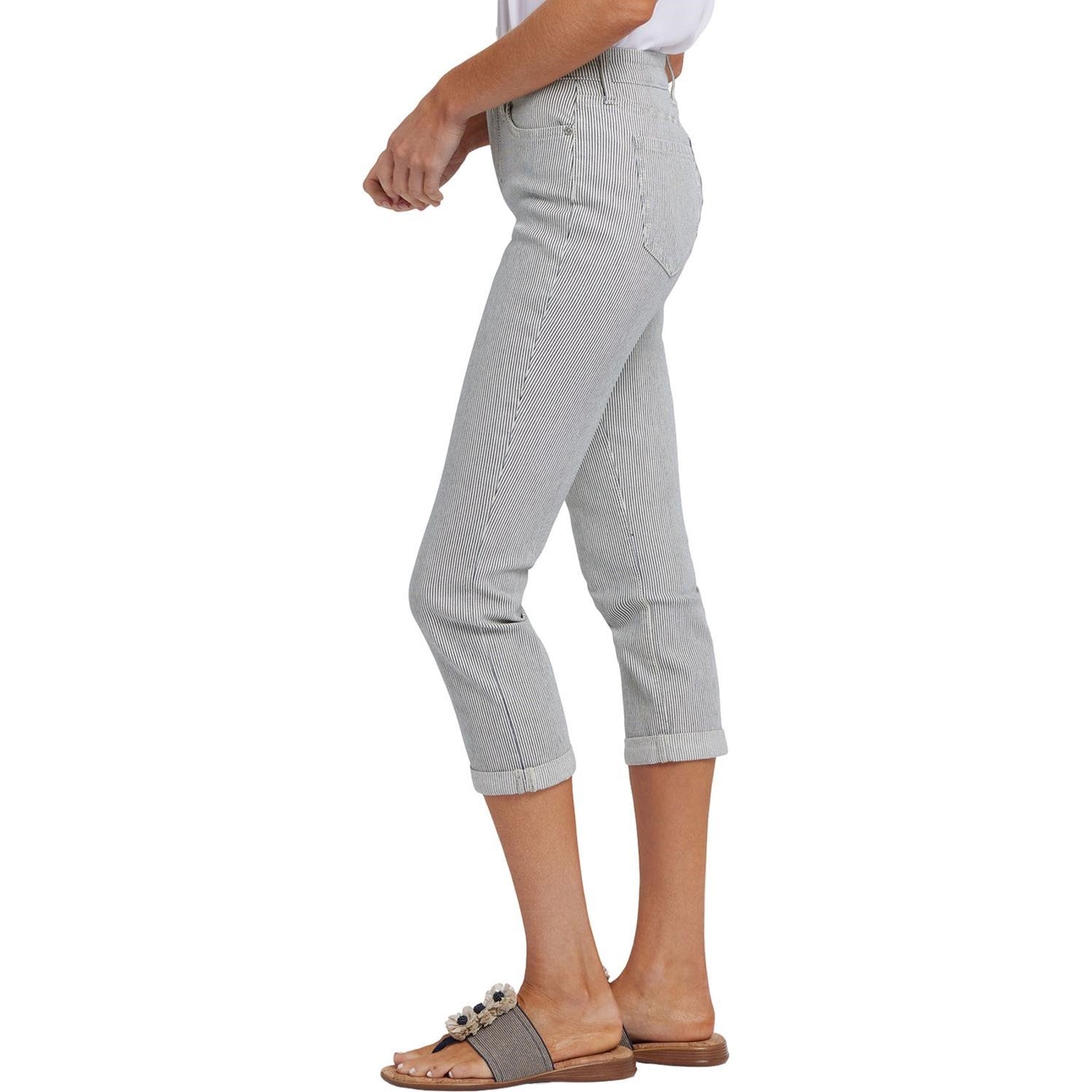 With a cool capri length and flattering slim fit, NYDJ's Chloe Skinny Capri Jeans in Petite are definitely on your must-wear list for spring and summer. Lift Tuck Technology uses a proprietary slimming panel with a patented criss-cross design to shape and support your curves. Finished with five-pocket styling, zip fly, button waist and roll cuffs. This jean is made with earth-friendly methods that result in reduced consumption of water, chemicals and/or energy.