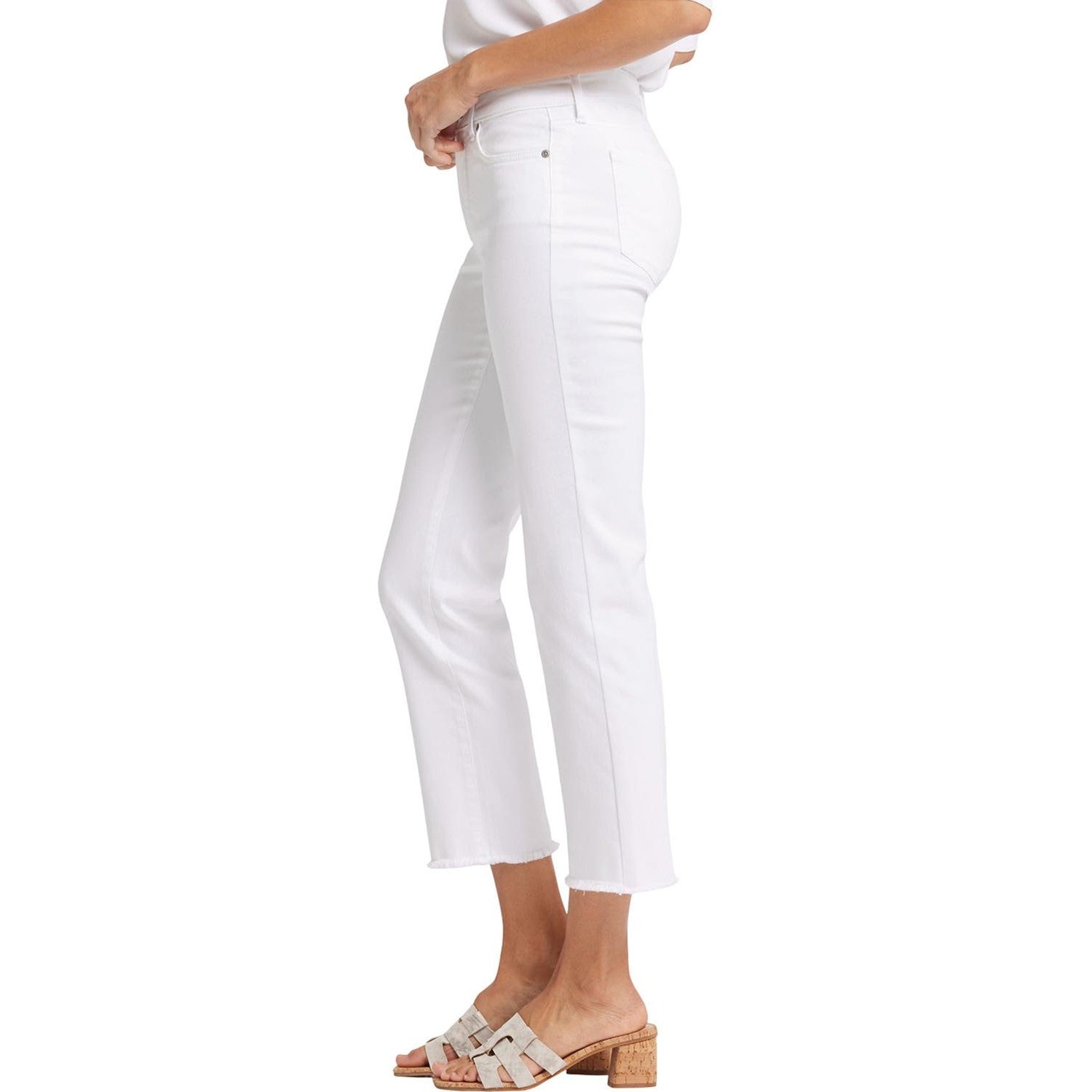You can't go wrong with our iconic bestselling fit. The curve-sculpting, figure-elongating construction of NYDJ's Marilyn Straight Ankle Jeans in Petite with Frayed Hems pairs well with everything, in a classic straight-leg silhouette that hits perfectly at the ankle. Our Lift Tuck Technology uses a proprietary slimming panel with a patented criss-cross design to further shape and support your curves. Finished with classic five-pocket styling, a zip fly with button closure and frayed hems. This jean is made with earth-friendly methods that result in reduced consumption of water, chemicals and/or energy.
