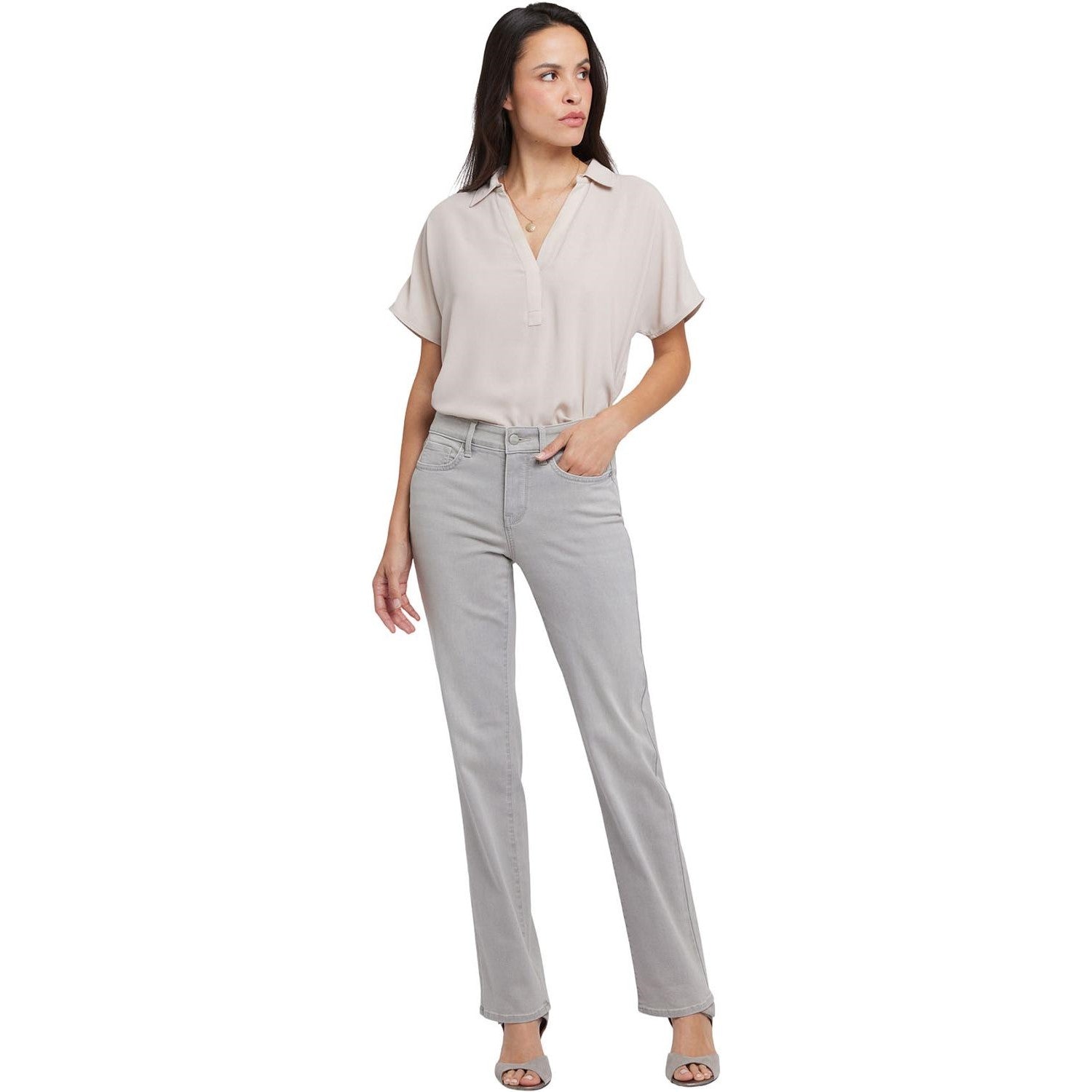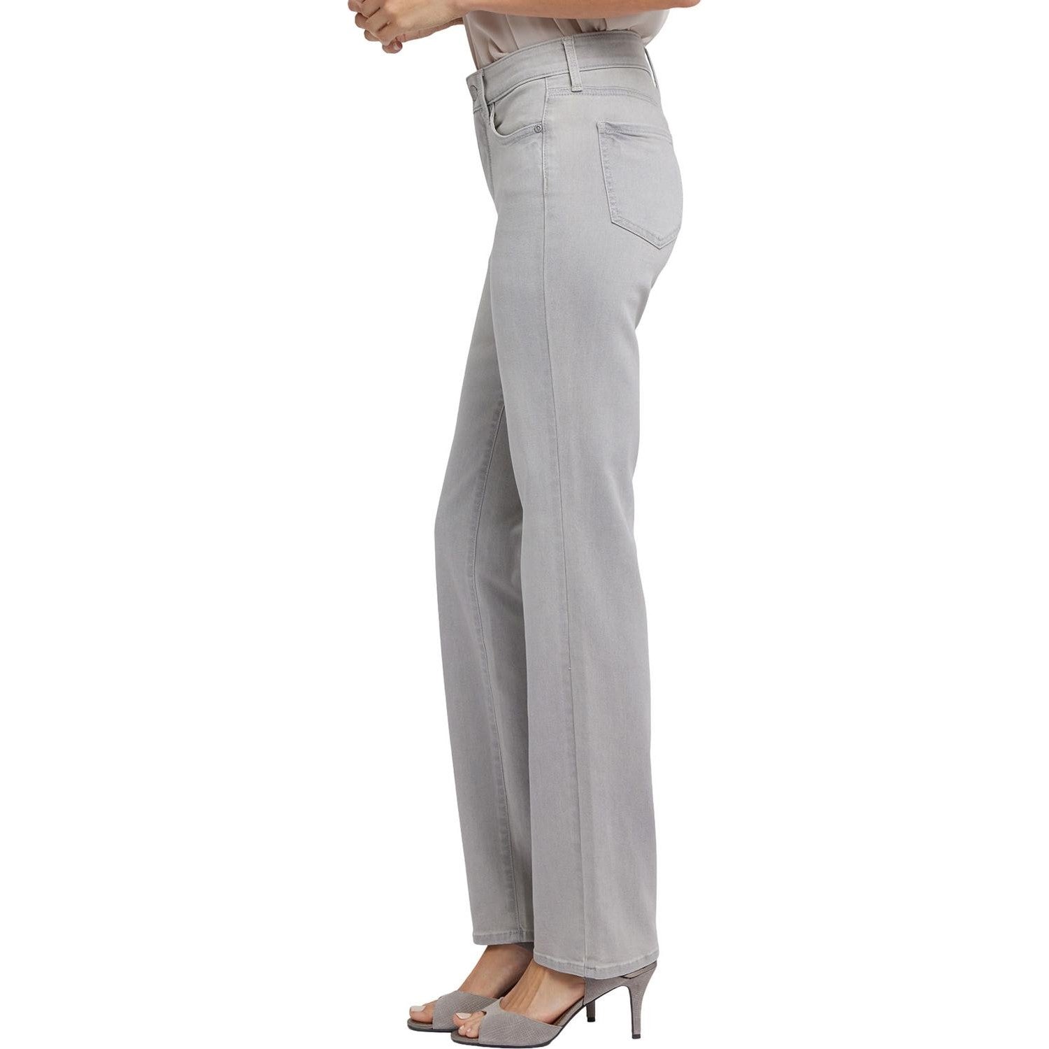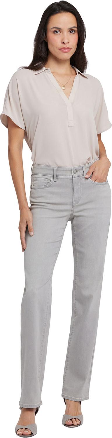 You can't go wrong with our iconic bestselling fit. The curve-sculpting, figure-elongating construction of NYDJ's Marilyn Straight Jeans in Long Inseam pairs well with everything, in a classic straight-leg silhouette. Lift Tuck Technology uses a proprietary slimming panel with a patented criss-cross design to shape and support your curves. Features classic five-pocket styling and a zip fly with button closure. Grenada Mist is a light grey wash with subtle sanding and whiskers. This jean is made with earth-friendly methods that result in reduced consumption of water, chemicals and/or energy.