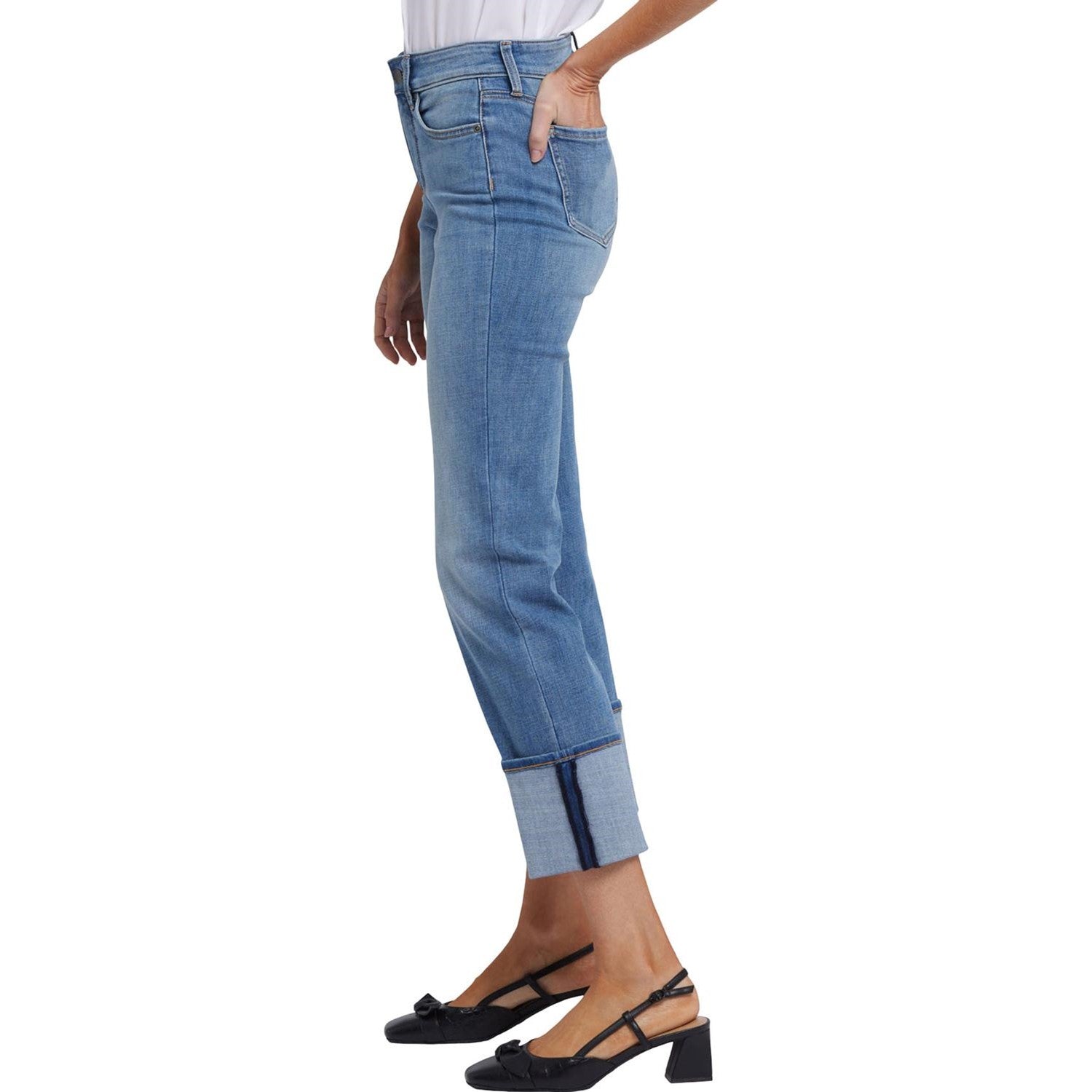 You can't go wrong with our iconic bestselling fit. The sculpting, figure-elongating construction of the NYDJ Marilyn Straight Jeans pairs well with everything, thanks to a versatile straight-leg fit. Lift Tuck Technology uses a proprietary slimming panel with a patented criss-cross design to shape and support your curves for an always-sleek silhouette. Features five-pocket styling, a zip fly with button closure and five-inch cuffs. Barcelona Breeze is a medium-light blue wash with classic worn-in details. This jean is made with earth-friendly methods that result in reduced consumption of water, chemicals and/or energy.