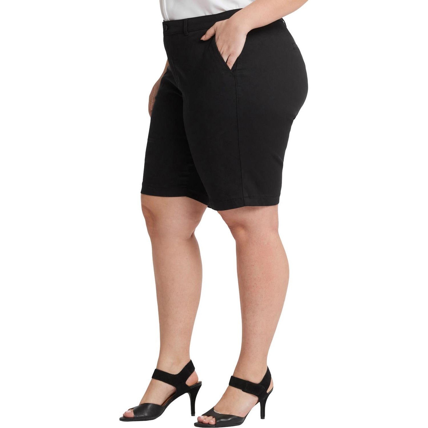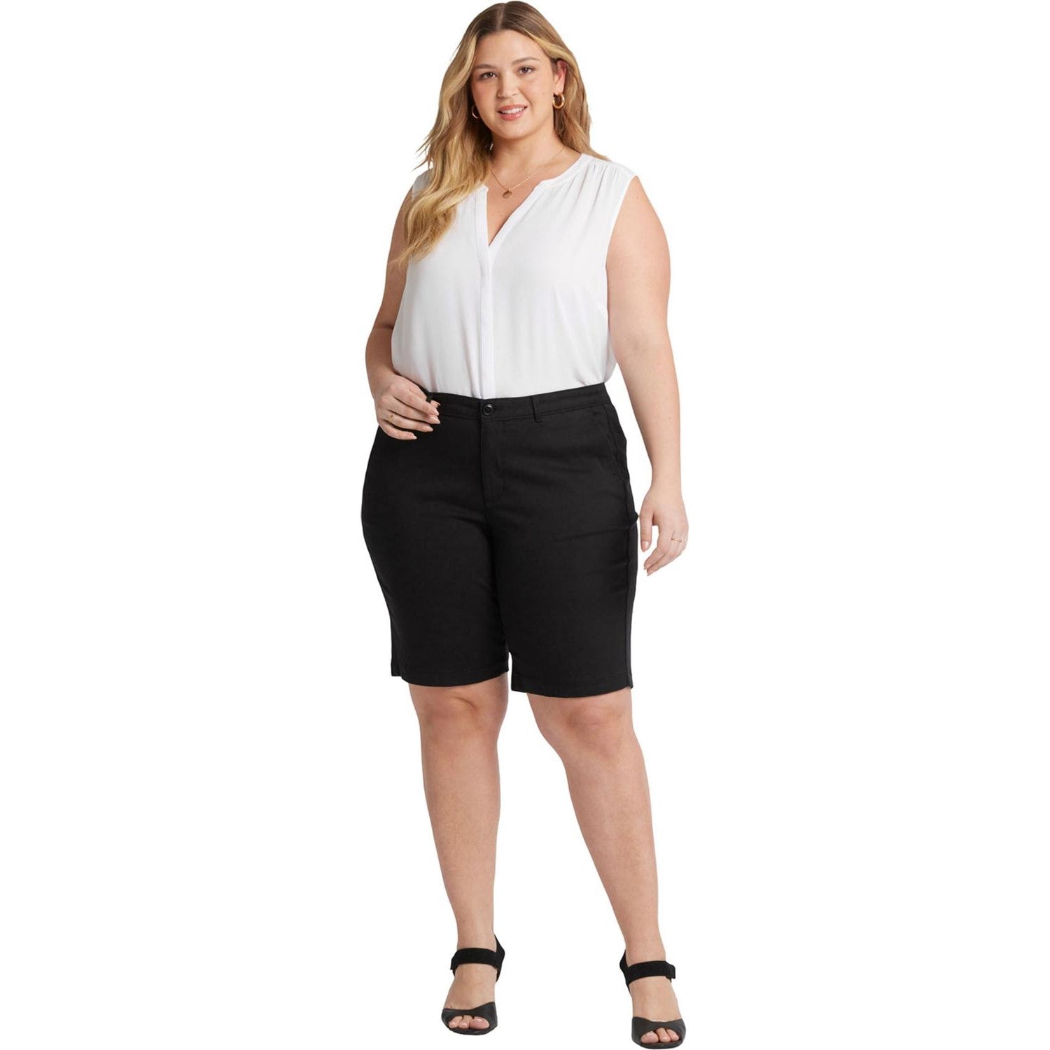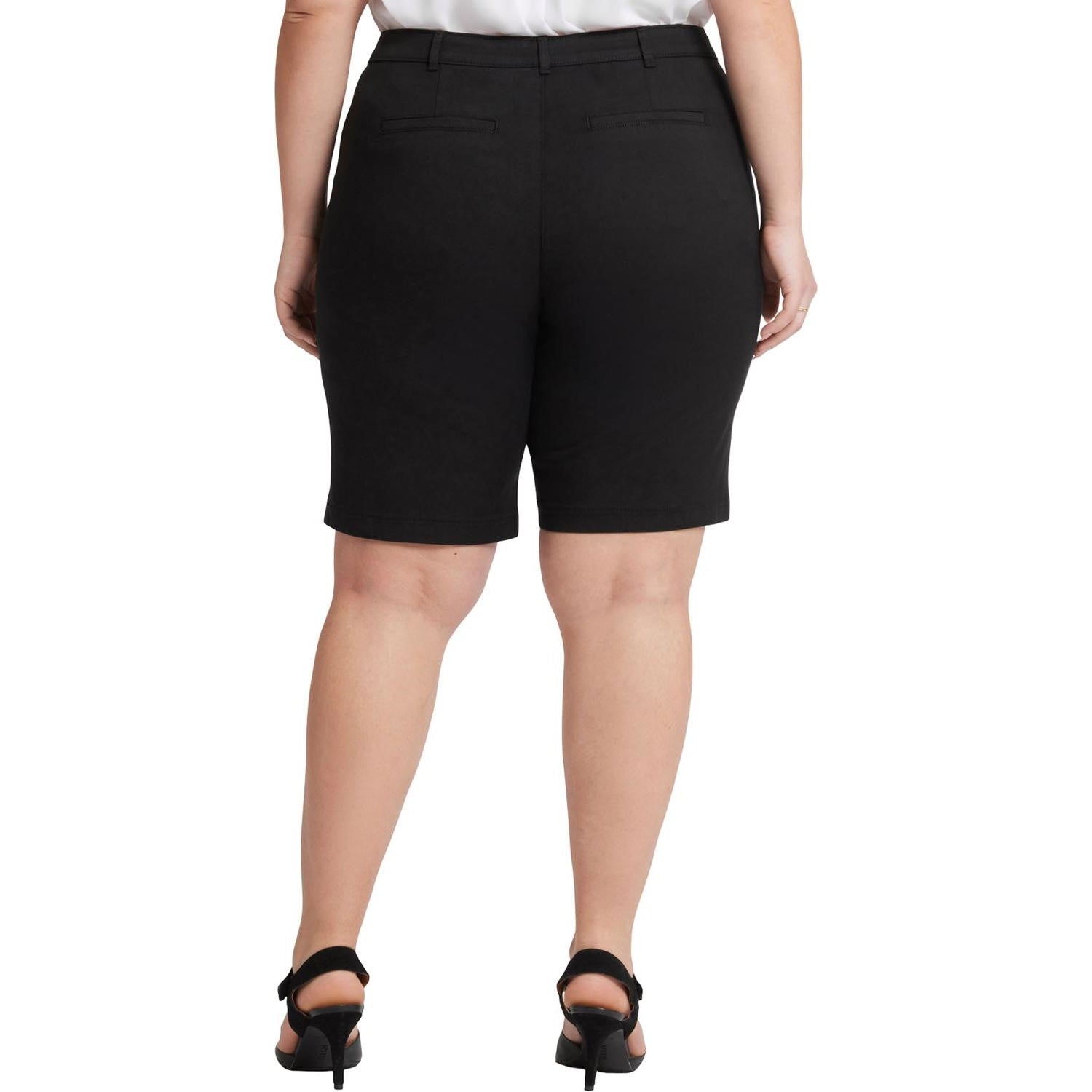 Look and feel good from day to night in the Bermuda Shorts in Plus Size by NYDJ. Soft stretch twill provides a comfortable yet polished look, while our signature Lift Tuck Technology slims from within. This classic warm-weather style features four-pocket styling and a zip fly with button closure. This short is made with earth-friendly methods that result in reduced consumption of water, chemicals and/or energy.
