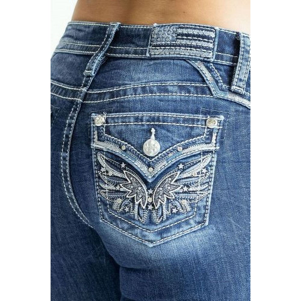 Miss Me - Womens 32" Intricate Wing Mid-Rise Bootcut Jeans