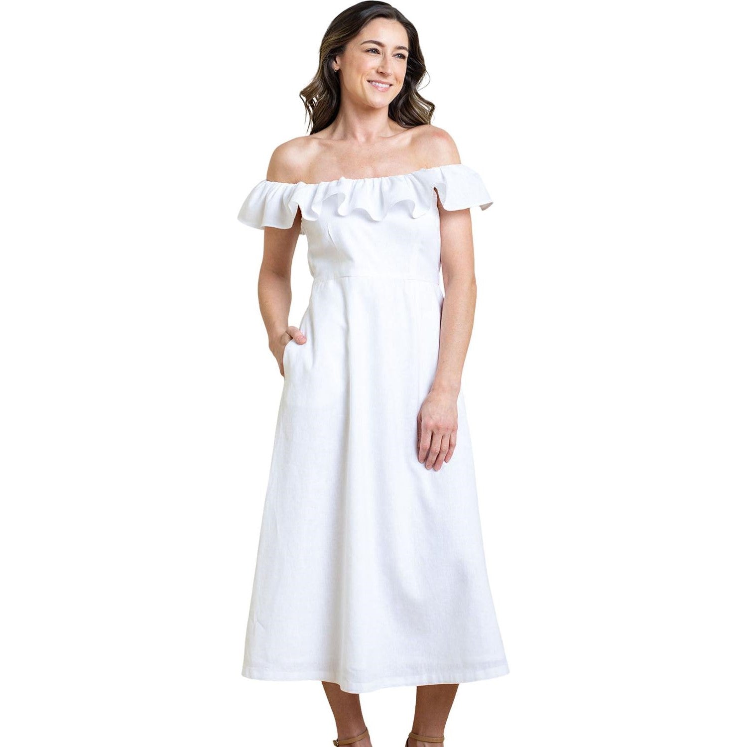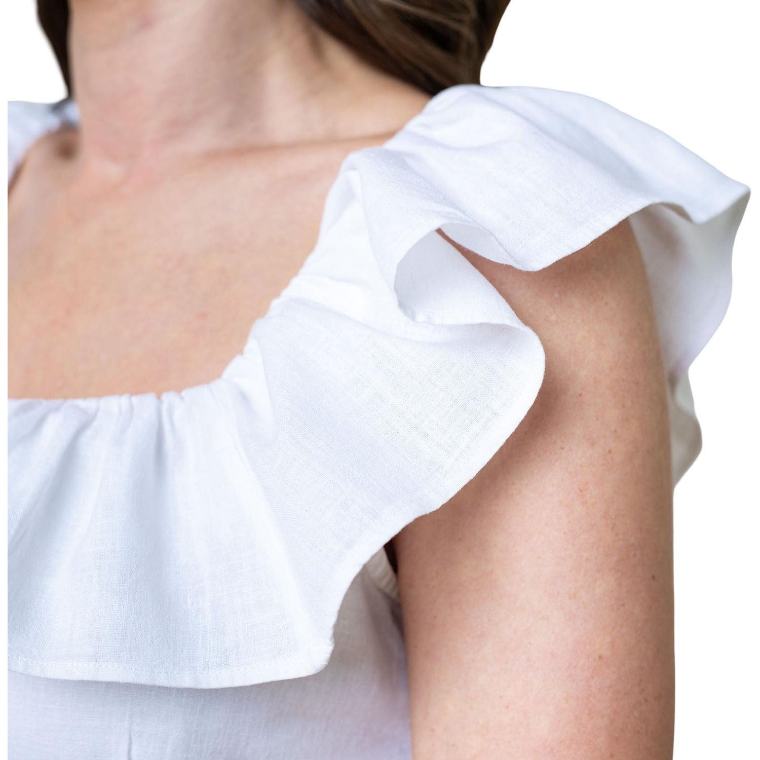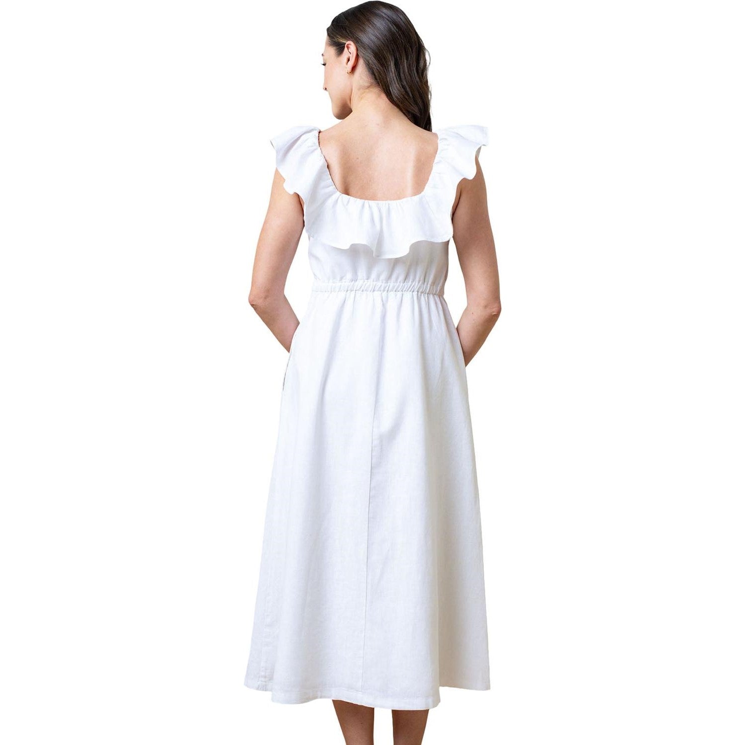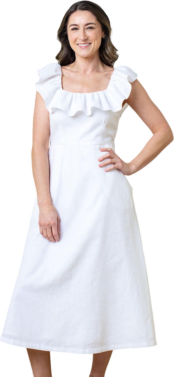 Hope & Henry - Womens Linen Ruffle Collar Dress