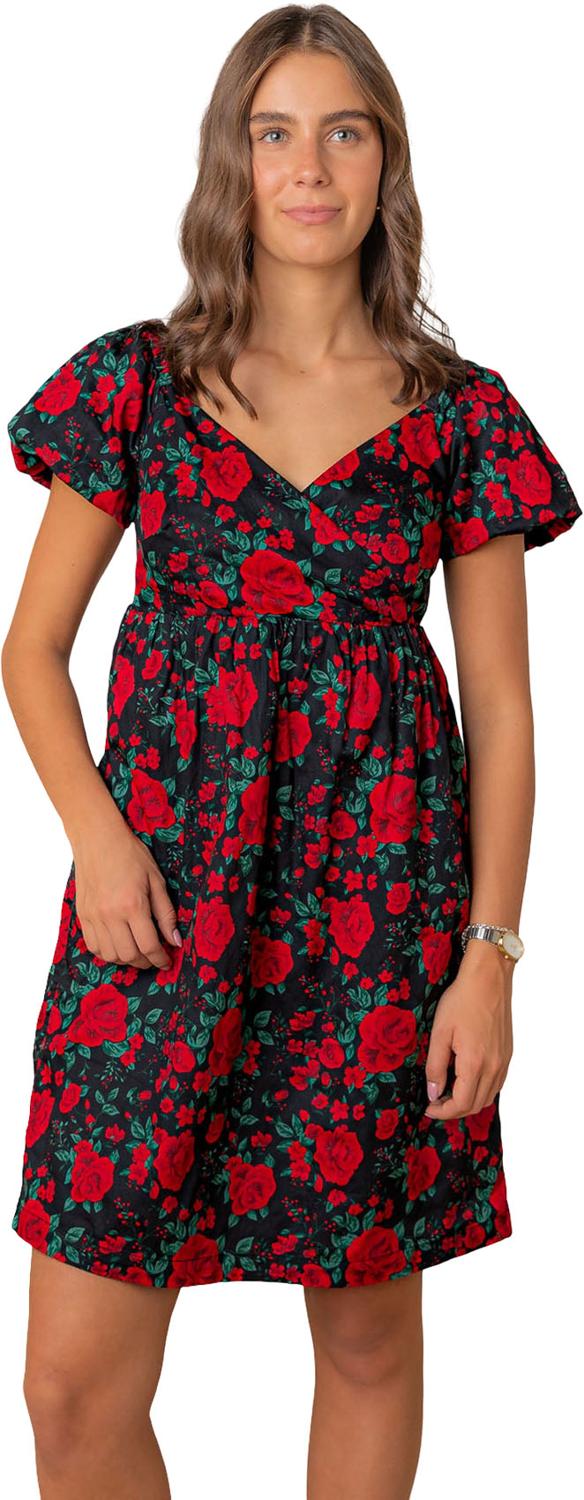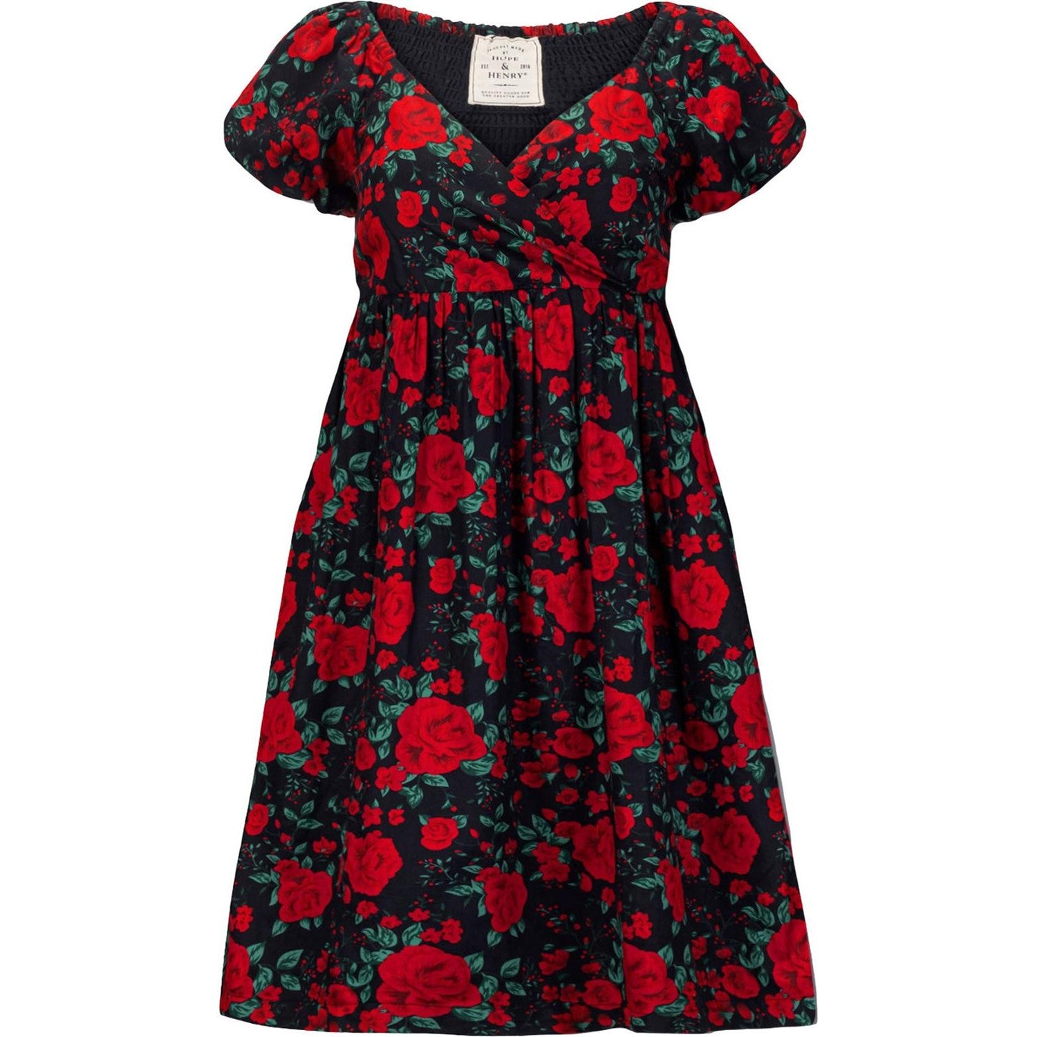 Hope & Henry - Womens Puff Sleeve Crossover Dress