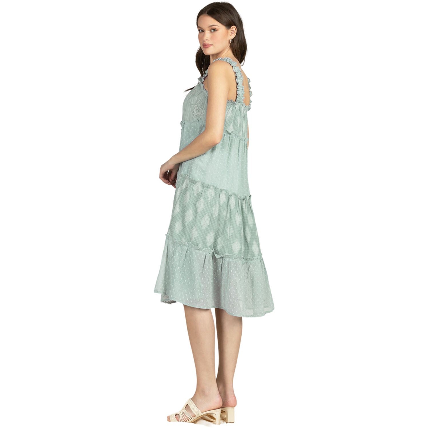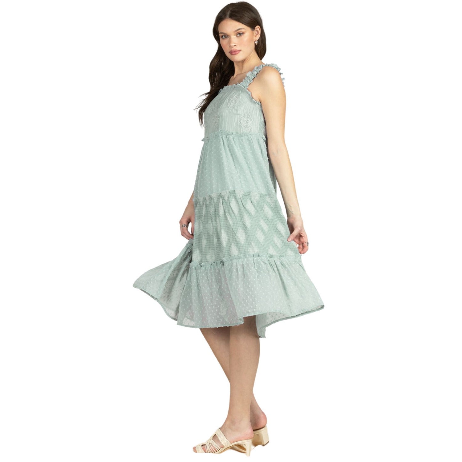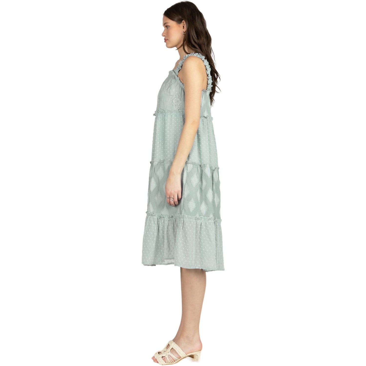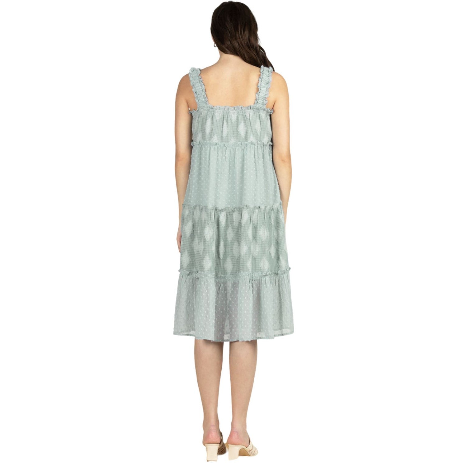 Miss Me - Womens Midi Ruffle Detail Straps Blue Dress