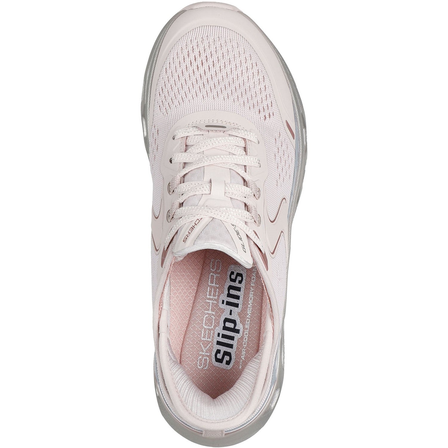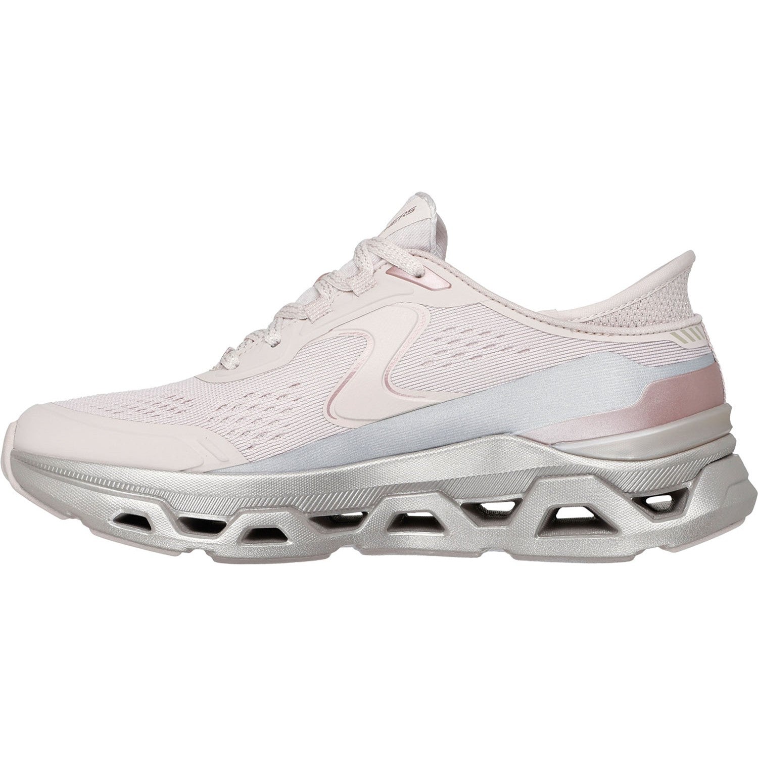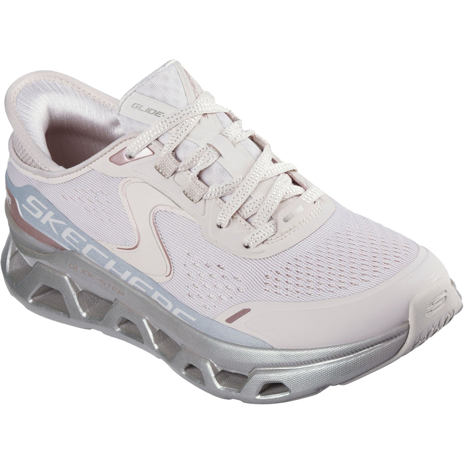 Break the mold in easy-wearing cushioned comfort wearing Skechers Hands Free Slip-ins: Glide-Step Altus - Starlight Shine. Designed with our exclusive Heel Pillow, this sporty vegan slip-on features an engineered mesh and hotmelt overlay upper with adjustable laces, a Skechers Air-Cooled Memory Foam comfort insole, and a metallic Glide-Step geometric cushioned midsole.