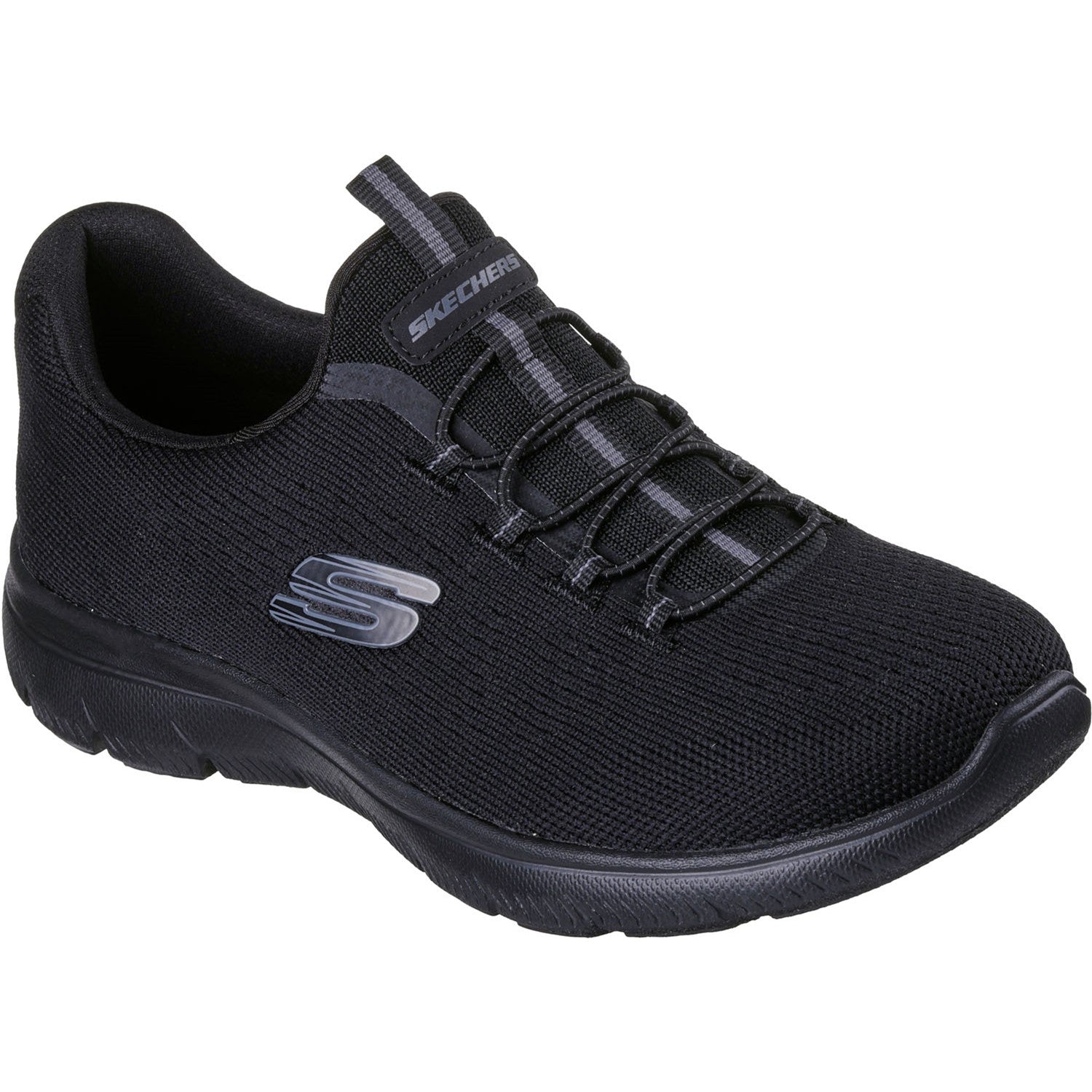 Reach the height of comfort and athletic style with Skechers Summits - Radiant Flow. This easy-on vegan design features an engineered knit upper with a stretch-lace front and a Skechers Memory Foam cushioned comfort insole.