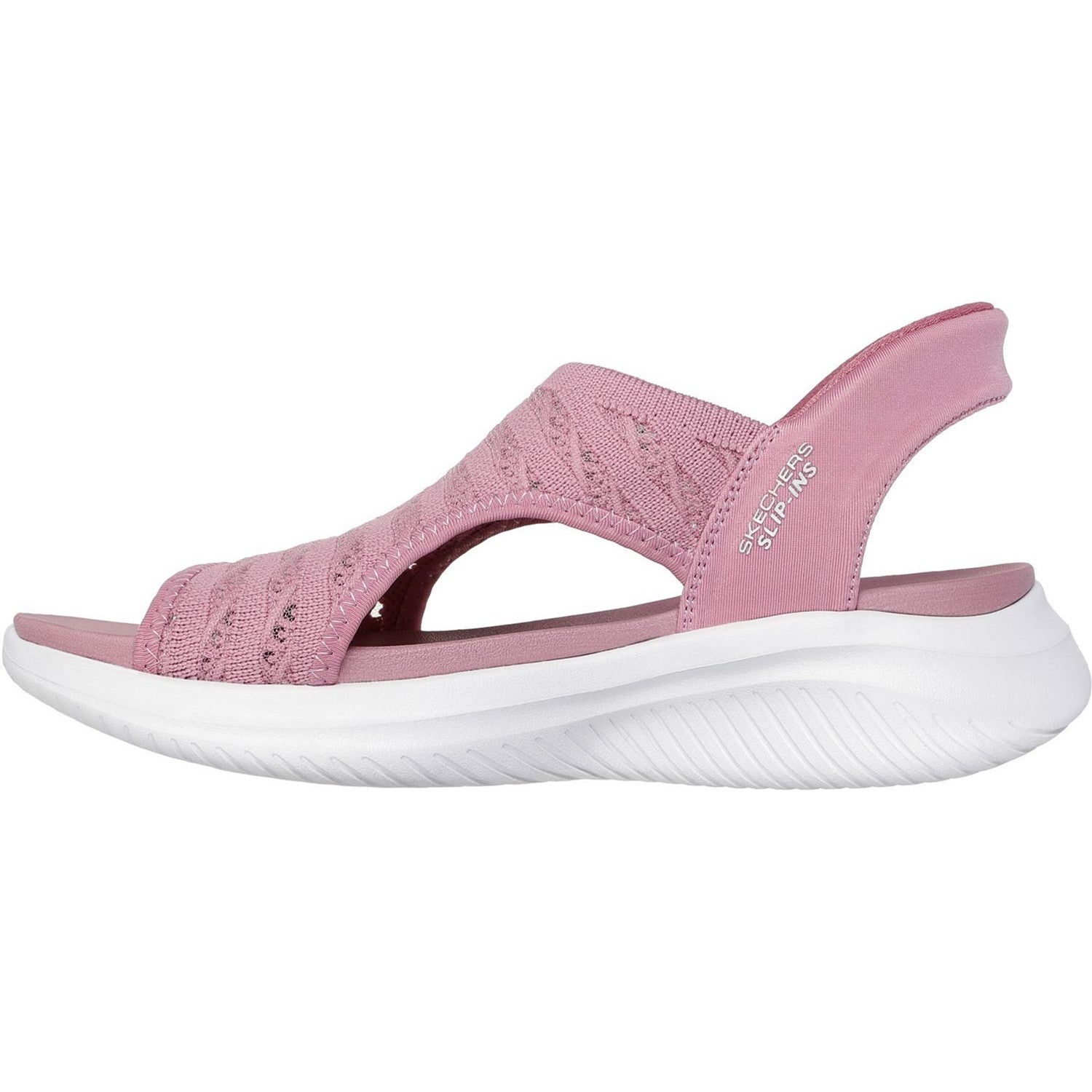 Enjoy sunny days in eco-friendly comfort with Skechers Hands Free Slip-ins: Ultra Flex 3.0 - Sun Warmth. Made with recycled materials and designed with our Touchless Fit Heel Pillowâ„¢, this slingback sandal features a swirl mesh H-band upper with a cushioned Yoga Foam footbed. Our Planet Matters: Good for your feet. Good for the world. Learn More About Hands Free Slip-ins Technology
