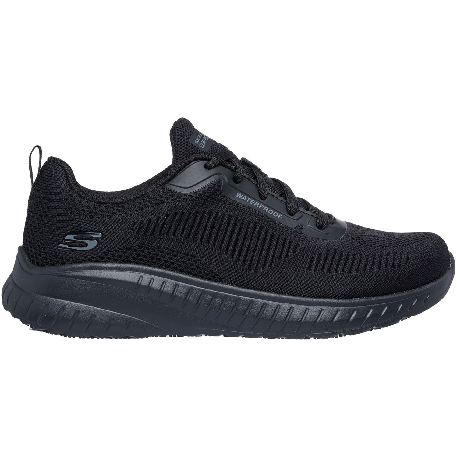 Stay Safe And Comfortable All Day With Skechers Work: Squad Chaos Sr - Awoa. This Waterproof Athletic Style Features A Mesh And Synthetic Upper With A Lace-Up Front, A Slip-Resistant Outsole, And A Cushioned Skechers Air-Cooled Memory Foam Comfort Insole.