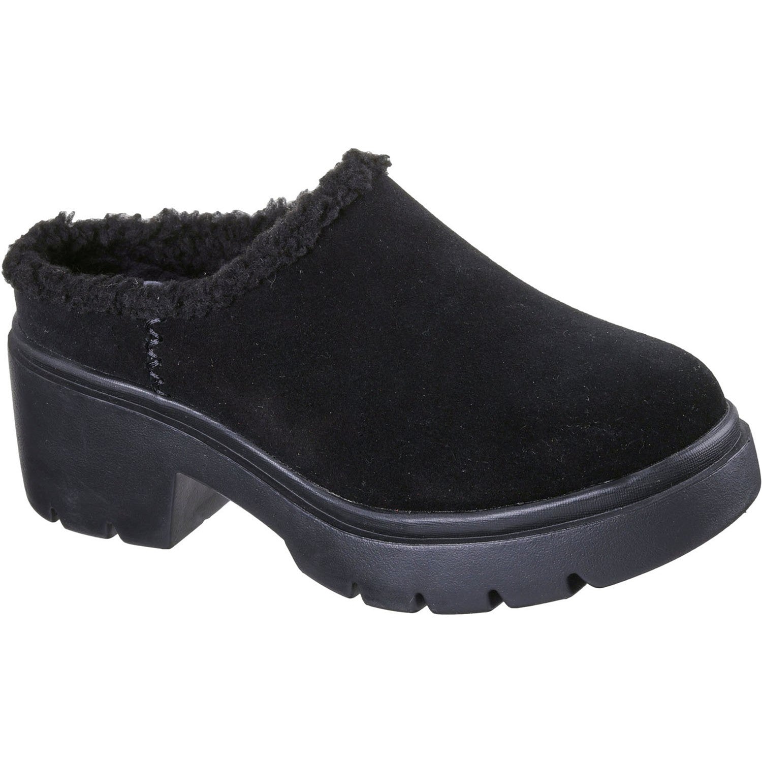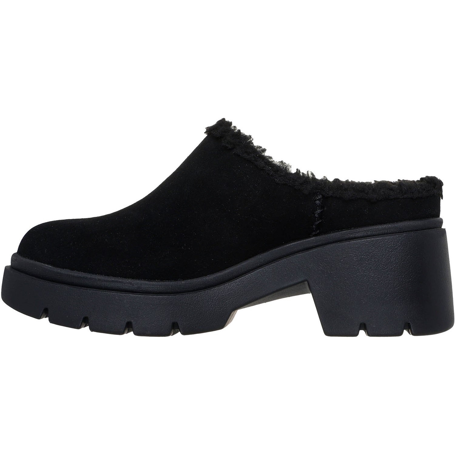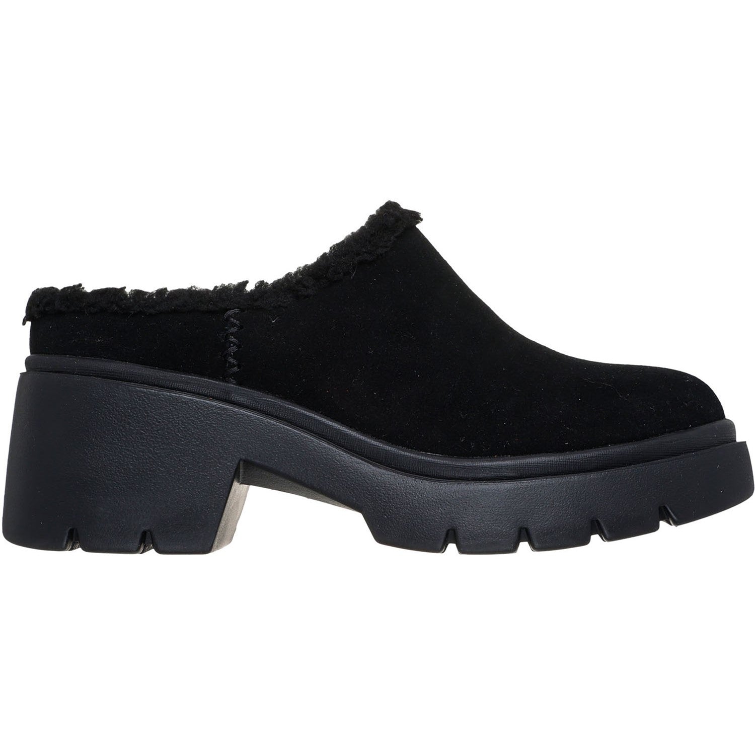 Experience the height of premium style in Skechers Cozy City. This elevated clog design features a 3M treated genuine suede upper with faux-shearling trim, a chunky articulated midsole, and our signature Air-Cooled Memory Foam cushioned comfort insole.