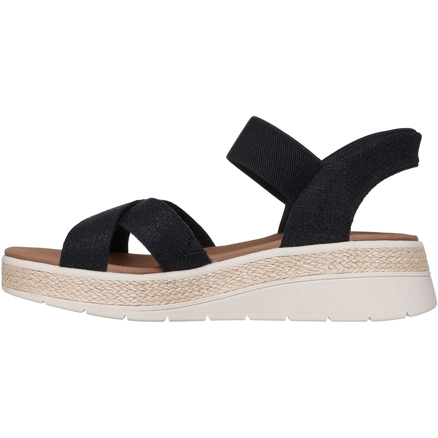 Step into leisurely breezy style wearing Skechers Hands Free Slip-ins: BOBS from Skechers Sun Ray - Bright Take. Designed with our exclusive Heel Pillowâ„¢, this slip-on sandal features a linen upper with a gore instep strap, jute midsole trim, and a Skechers Plush Foam cushioned comfort footbed. BOBS from Skechers is committed to saving the lives of pets in need. Learn More About Hands Free Slip-ins Technology