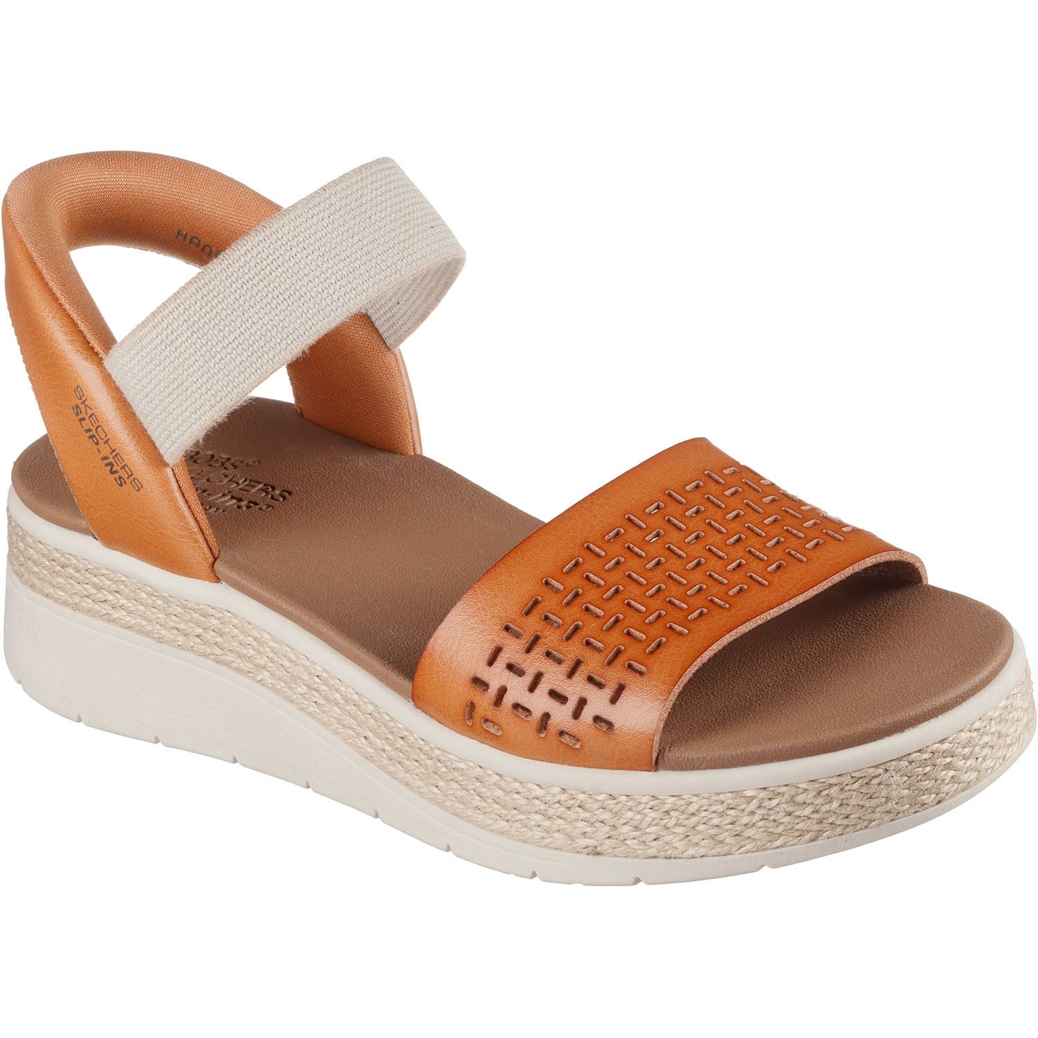- Skechers Hands Free Slip-ins for an easy fit,Exclusive Heel Pillowâ„¢ holds your foot securely in place,Skechers Plush Foam cushioned comfort footbed,Crafted with 100% vegan materials,Vegan leather upper with gore instep strap,Jute midsole trim,Flexi