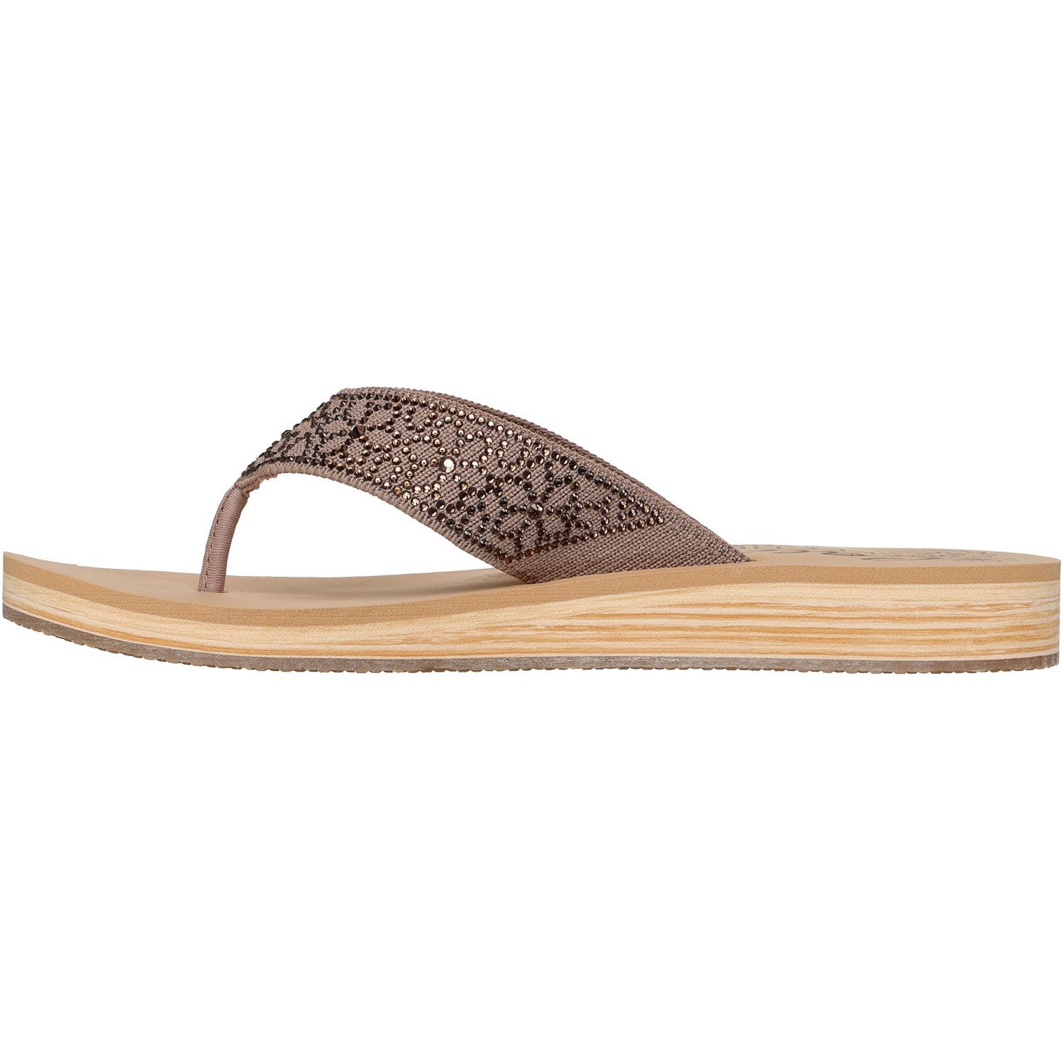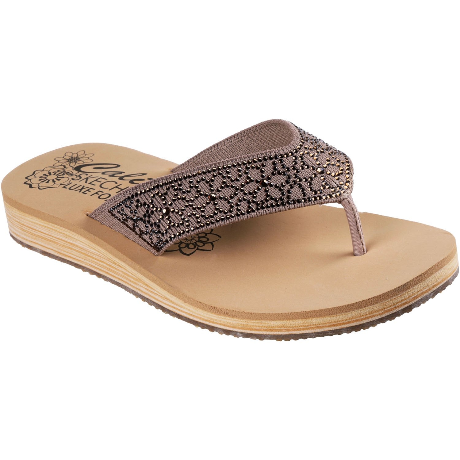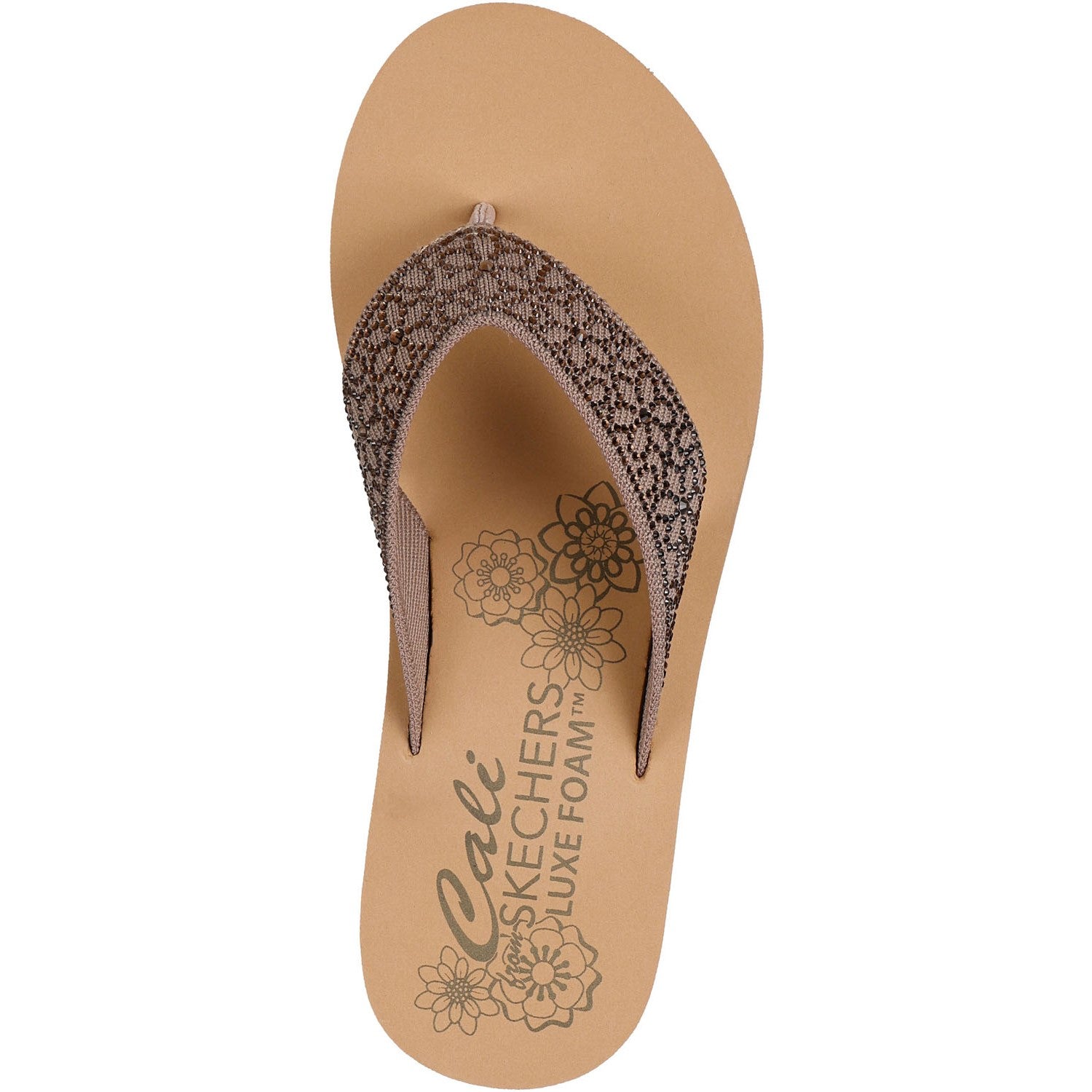 Add a little shimmer to your look with Skechers Cali Summers Low. This thong sandal features a canvas upper with rhinestone embellishments and a Luxe Foam cushioned footbed.